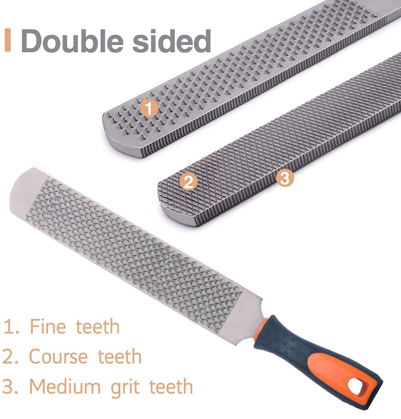 Q: How does the double-sided hoof rasp work?A: The double-sided hoof rasp features both a fine tooth side and a coarse tooth side, allowing you to choose the appropriate side for different hoof trimming needs, making it versatile for various applications.
