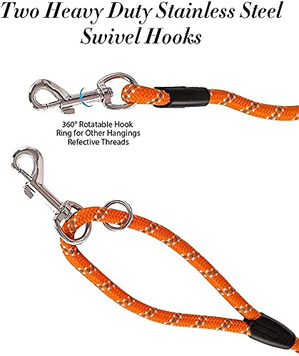 Dog Tie Out Cable: Both ends of our rope dog leash leash have a heavy duty stainless steel swivel hook that can rotate 360 degree. You can tie one end of this training leash to your body or trees etc. so that you can free your hands when traning hiking walking etc.