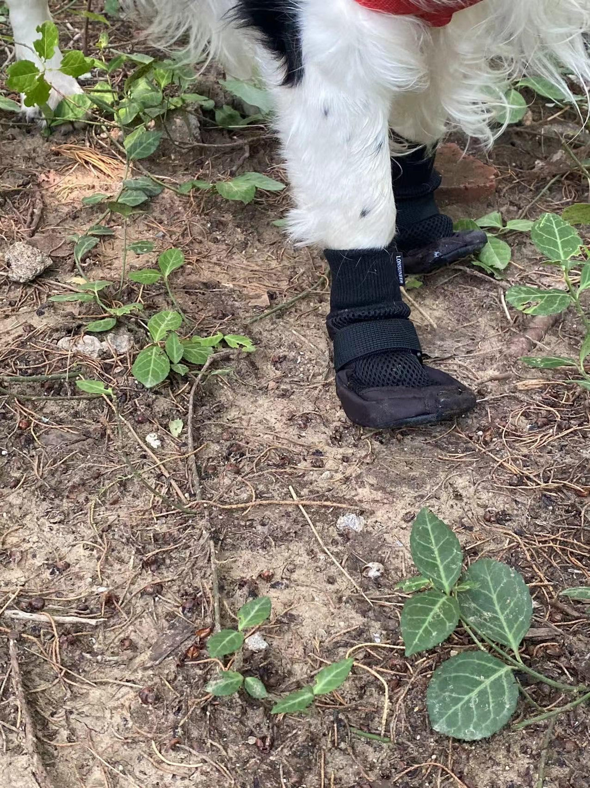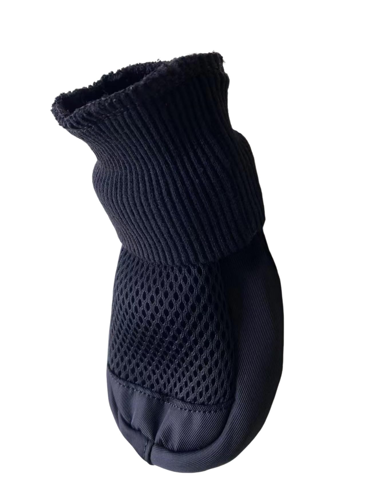 Q: What materials are used in the Lonsuneer Dog Boots?A: The Lonsuneer Dog Boots are made with a double-layer breathable mesh fabric, which is hemmed with soft cloth for added comfort. The flexible cuffs keep debris out while ensuring your dog's paws stay cool and dry.