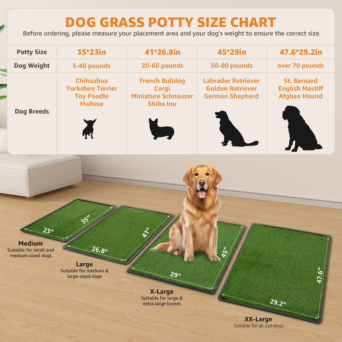 Loobani 47.6'X29.2' Extra Large Dog Grass Potty Tray - Dog Litter Box With 2-Pack Replacement Artificial Grass Puppy Training