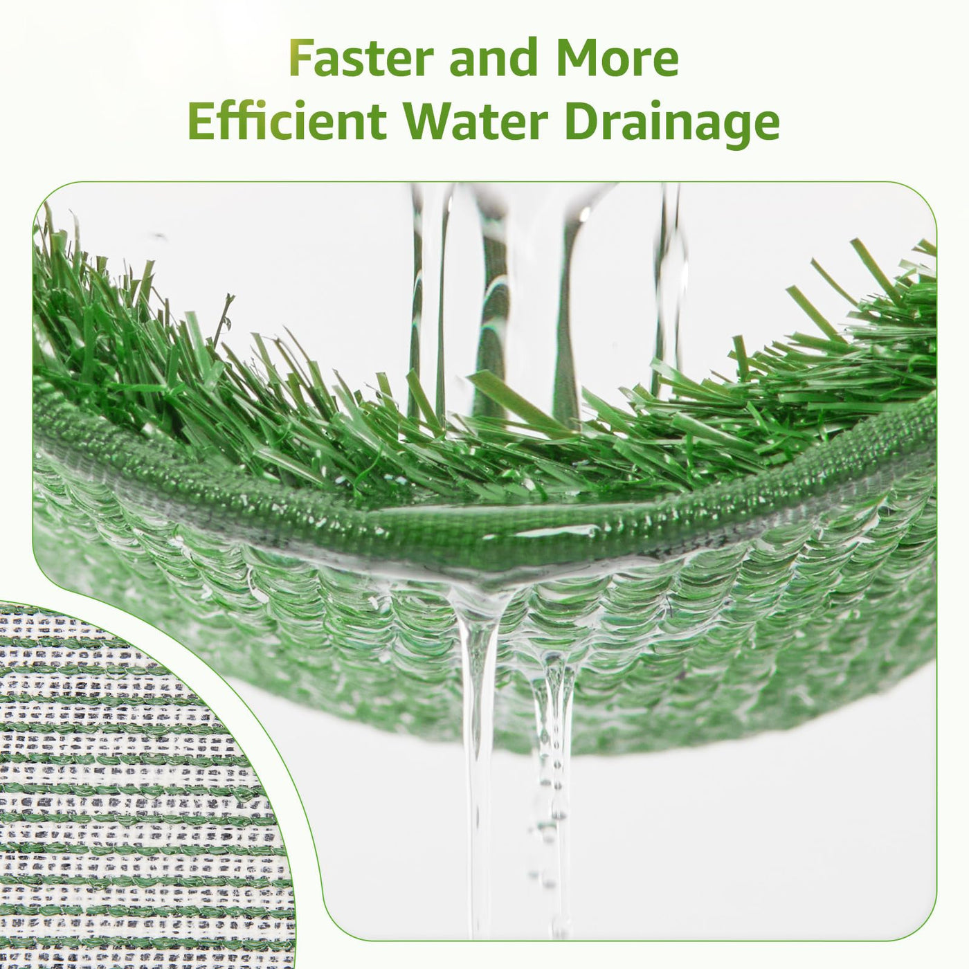 RAPID FLOW DRAINAGE: Constructed with a highly-drainable backing material to maximize draining capacity with drainage holes to help urine and clear water wee away quickly and the porous grass avoids wet paws after the dog use- Avoid any mess for potty time.