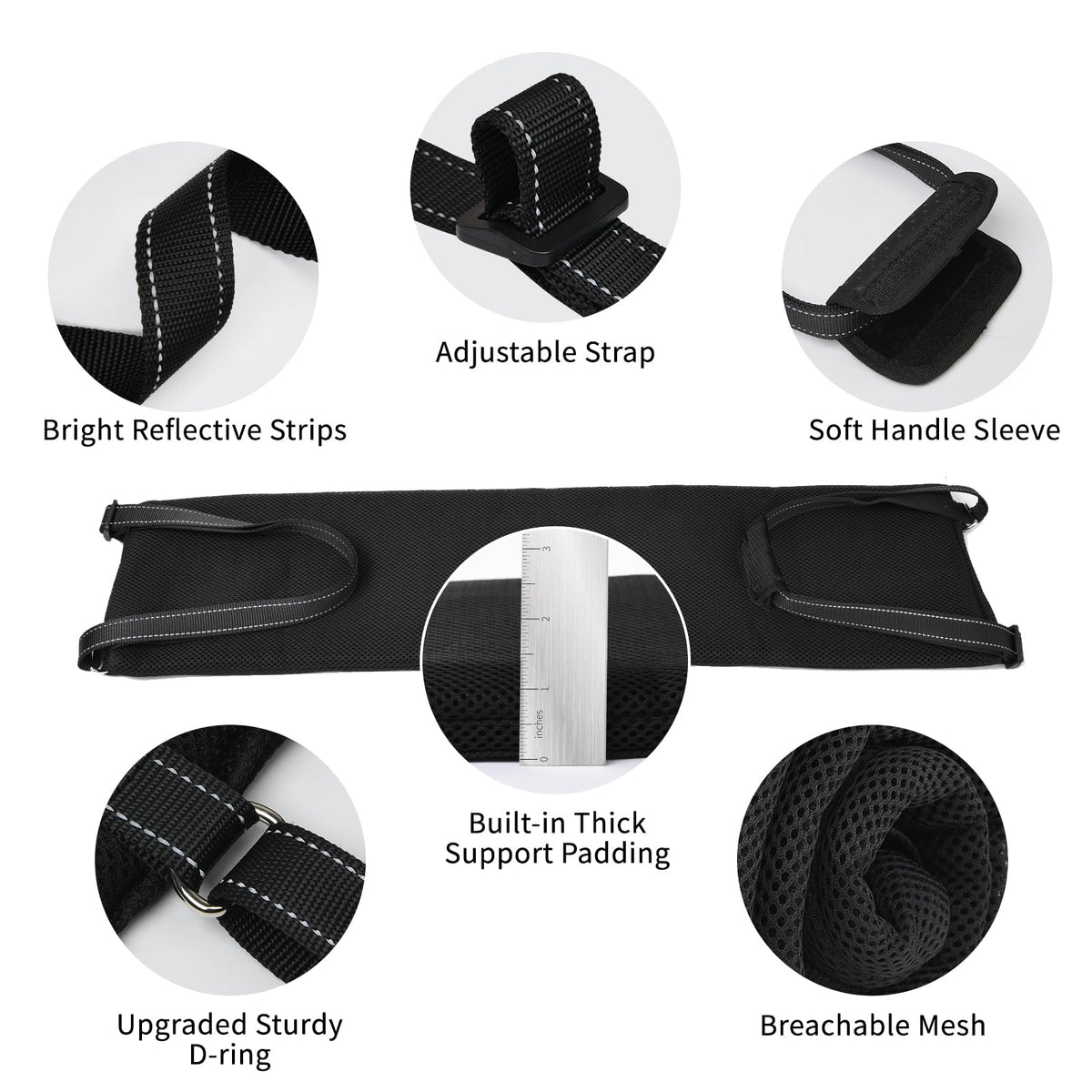 cOMFORTABLE & BREATHABLE MESH DESIgNOOBANI portable dog sling is made of soft and breathable mesh which is lightweight breathable and more comfortable it wont rub against your puppys belly perfect for walking in hot summer When the male dog urinates it can be removed or moved to a suitable position on the dogs chest great for small medium and large dogs O OUT EASILYThe dog support sling for back legs can reduce pain from hip leg or back injuries Help your dog get in and out of the car go up and down the stairs get on the sofa and furniture get out of bed or go for a walk Let you and your dog spend a pleasant time without any burden HIP SUPPORT SLINgThe dog support sling is a walking solution specially designed for all kinds of elderly disabled suffering from arthritis hip dysplasia orthopedic injury and weak hind legs dogs especially suitable for dogs who are unable to navigate the stairs has a difficult time getting up and down has IVDD TPLO AcL ccL or other surgery Provide assistance for dogs with reduced mobility ADJUSTABLE STRAPSThe adjustable straps on the rear lift dog harness can hold the weight of any breed of dog The adjustable dog support sling helps reduce stress on your back because you dont have to bend over to help your dog and it comes with a comfortable handle to protect your hands Reflective nylon straps run throughout the dog sling lift so you can easily spot them and keep them safe around the road while walking Easy to UseWhen you use this dog lifting harness for rear legs just stick the soft pads on your dogs chest or near the hips and hind legs This dog lift harness large breed comes with a carry-on gift bag and is lightweight for easy portability Machine washable