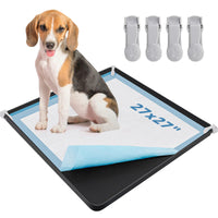 LOOBANI Large Dog Pee Pad Holder - Silicone Puppy Pad Holder - High Edge Dog Potty Tray with 4 Holder Clamps for Puppy Potty Training, Fits Up to 27'' x 27'' Training Pads, Black