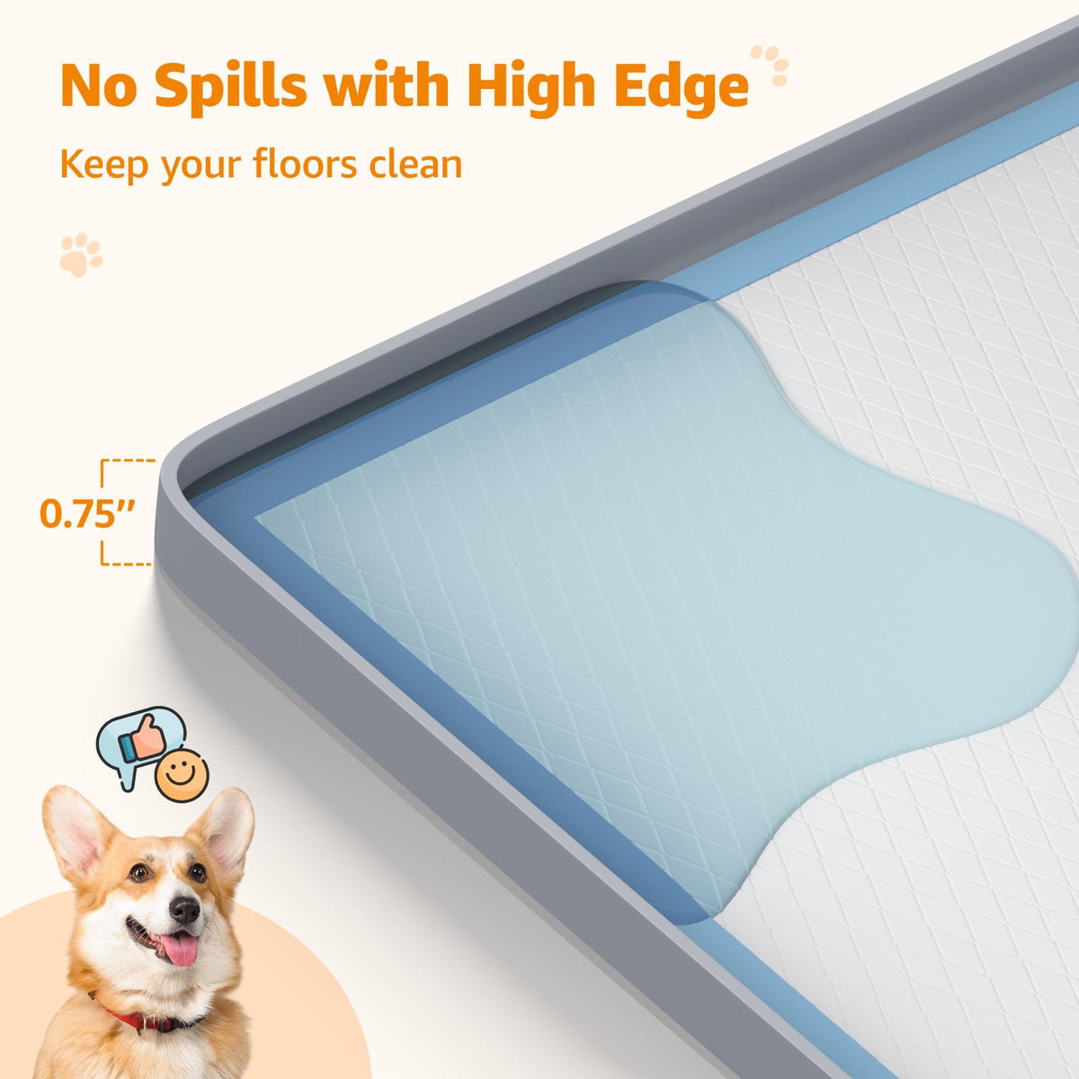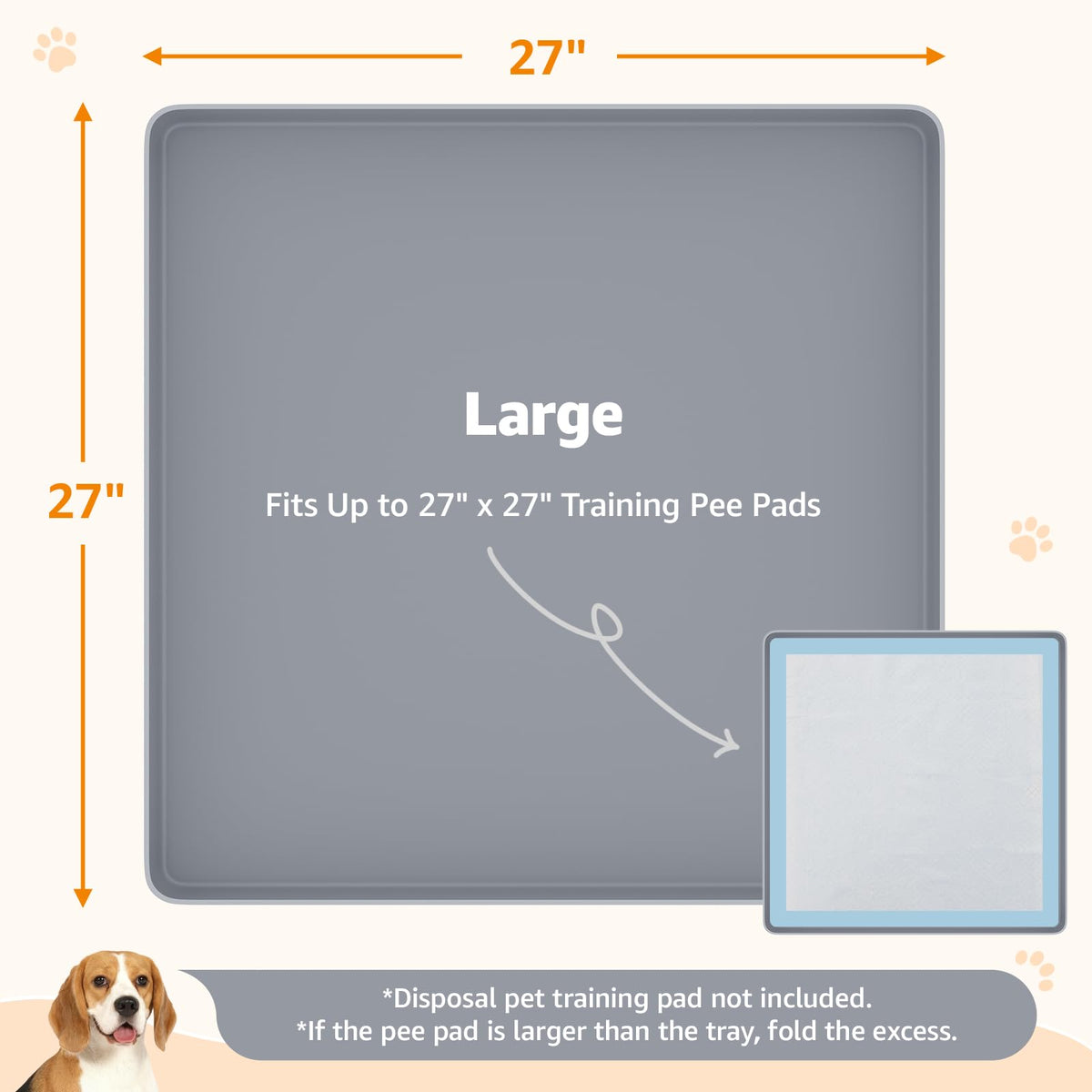 LOOBANI Large Dog Pee Pad Holder - Silicone Puppy Pad Holder - High Edge Dog Potty Tray with 4 Holder Clamps for Puppy Potty Training, Fits Up to 27'' x 27'' Training Pads, Gray