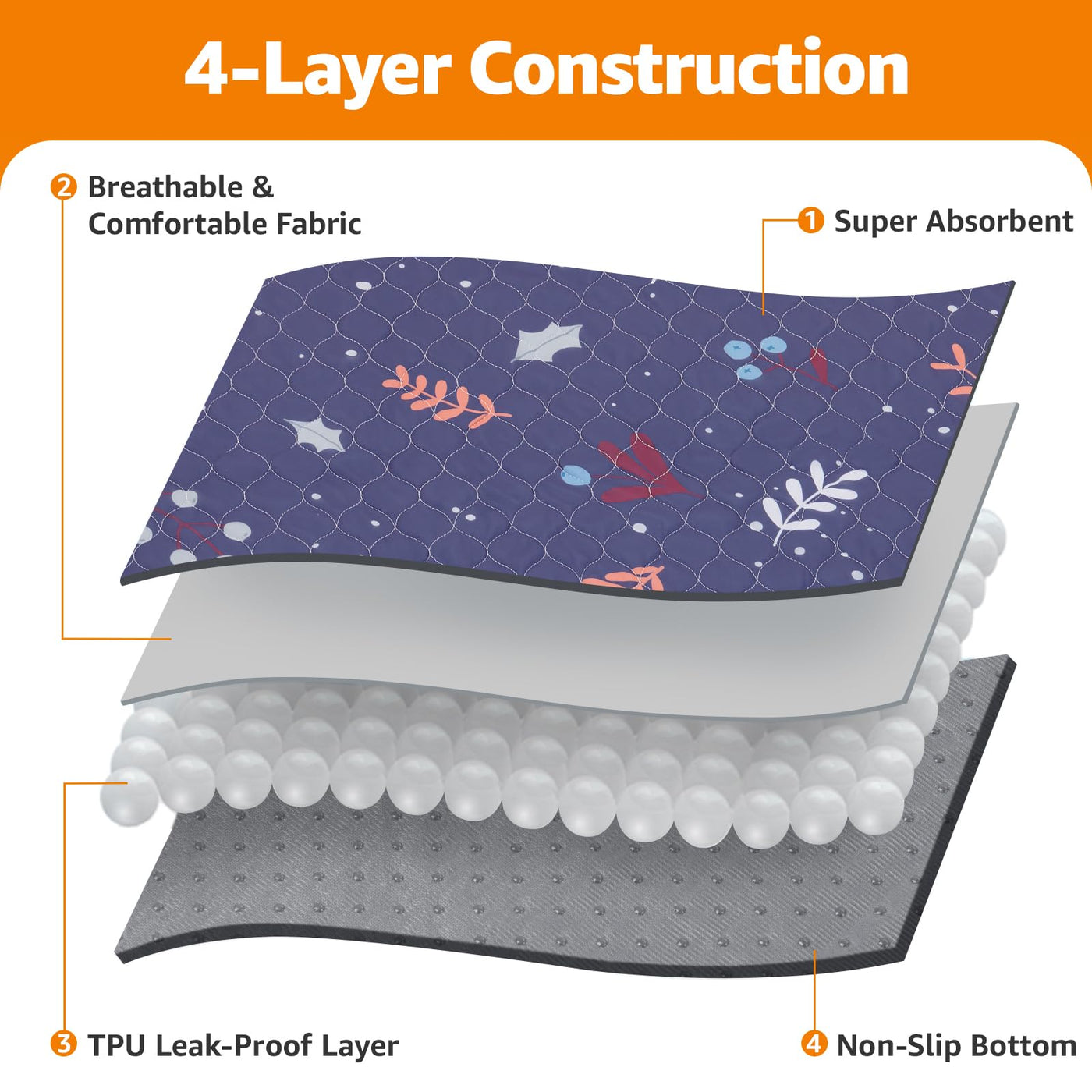Loobani Pee Pads For Dogs Washable: Large Reusable Puppy Training Pads 48'' X 48'', 2 Pack Absorbent Dog Pee Pads Non-Slip, Wate