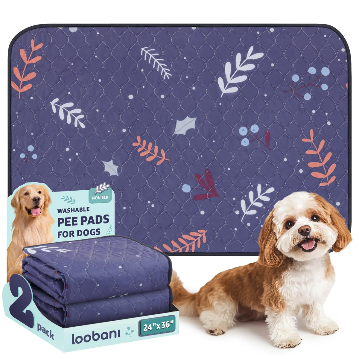 Keep Your Home Clean, Comfortable, And Odor-Free With Loobani Washable Pee Pads For Dogs. These Reusable Dog Pee Pads Are Designed To Provide Ultimate Protection For Your Floors, Furniture, And Crates While Offering Comfort And Reliability For Your Furry Friend. Whether You'Re Potty Training A New Puppy Or Managing An Older Dog'S Needs, These Washable Puppy Pads Are The Perfect Solution. Made From Premium, Durable Materials, These Pee Pads For Dogs Washable Feature A 4-Layer Design, With An Absorbent Core That Quickly Locks In Liquids And A Waterproof Backing That Prevents Leaks. This Ensures Your Floors And Furniture Remain Dry, Even With Frequent Use. Reusable Puppy Pads Waterproof Are Not Only Cost-Effective But Also Eco-Friendly, Helping You Reduce Waste. These Washable Dog Pee Pads Are Available In Multiple Sizes To Accommodate Small, Medium, And Large Dogs, As Well As Cats And Other Pets. They Are Perfect For Whelping Mats For Dogs Waterproof, Providing A Clean And Safe Space For Puppies. The Non-Slip Backing Ensures That The Pee Pads Stay In Place, Even When Your Dog Is Active. This Feature Makes The Dog Pee Pads Washable Ideal For Use On Floors, In Crates, On Furniture, Or In Pet Playpens. The Soft Surface Provides Added Comfort, Making Them Perfect For Both Potty Training And Everyday Use. Reusable Pee Pads For Dogs Are Machine Washable, Ensuring Long-Lasting Durability And Easy Maintenance. Simply Toss Them In The Washer And Theyre Ready For Reuse, Saving You Money And Reducing The Waste. Whether Youre Training A Puppy Or Managing An Older Dogs Needs, These Puppy Pads Washable Are A Reliable And Sustainable Option.