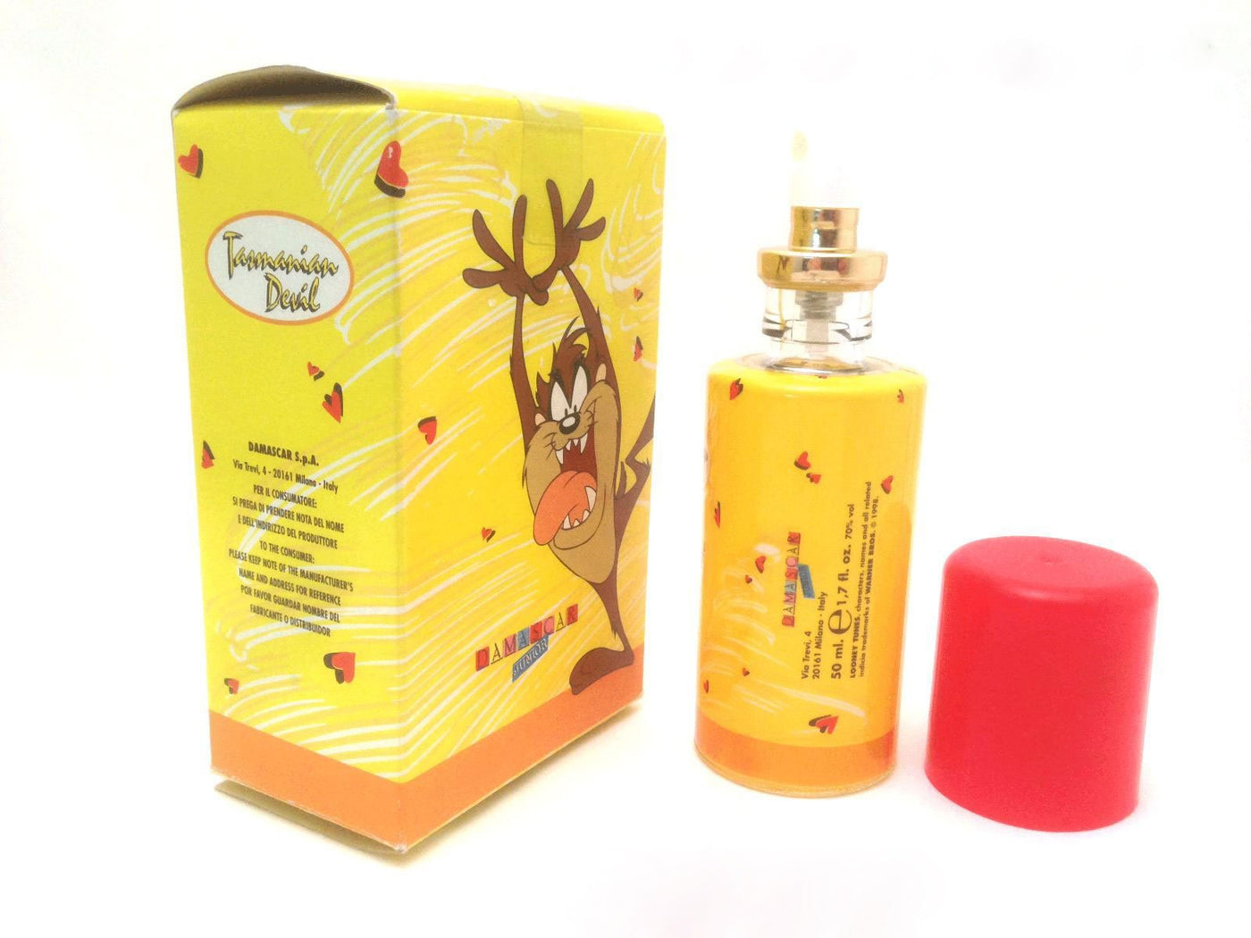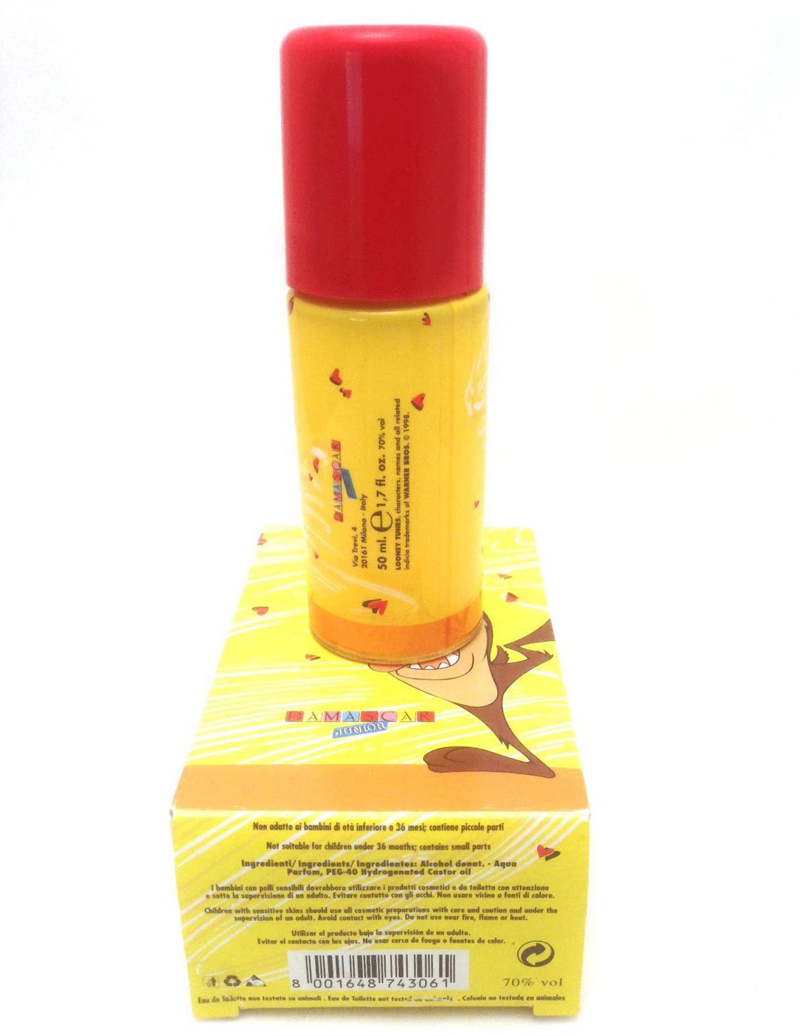 Q: Is the Looney Tunes Tasmanian Devil Cologne made with safe ingredients?A: Yes, this cologne is made in Italy by Damascar and adheres to safety standards for perfumery products, ensuring it is safe for young users.