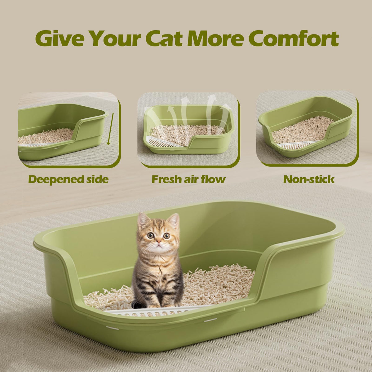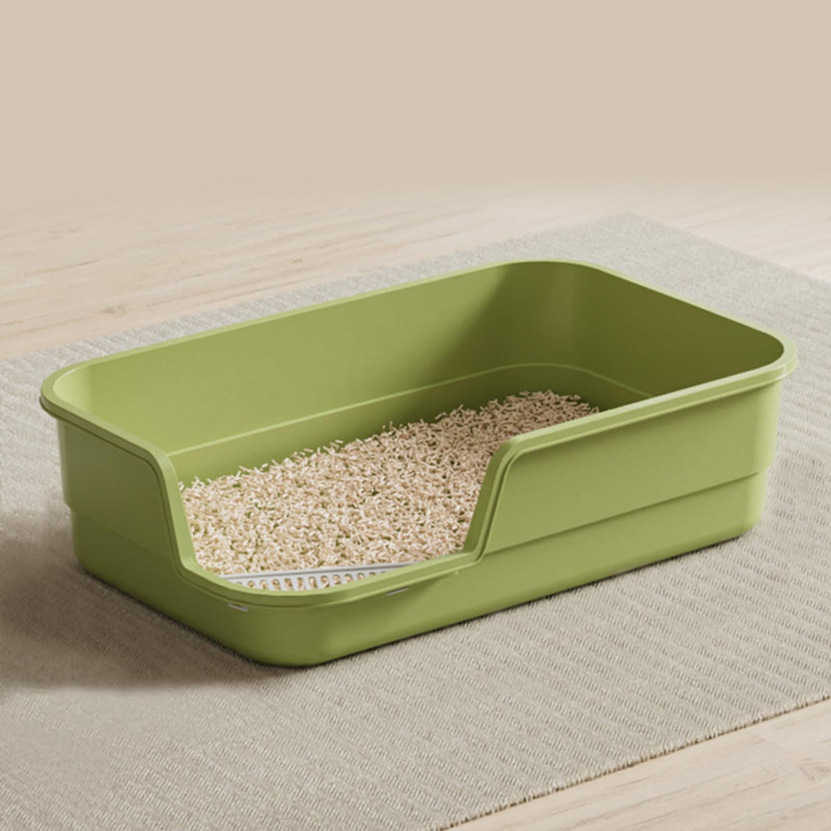 This Extra large cat litter box is designed to provide your cats with a comfortable and spacious environment for their daily needs. Measuring 23.6 x15.7 x5.9, this cat litter box offers ample room for both kittens and large cats to move around freely. Its generous size ensures that your cats have enough space to comfortably use the litter box without feeling cramped. The low-entry design makes it especially suitable for kittens, elderly cats, or cats with limited mobility. Crafted from high-quality plastic, this cat litter tray is easy to clean and maintain. The smooth, seamless surface prevents litter buildup and ensures a hygienic environment for your cat. Cleaning is quick and simple, with a washable design that minimizes the effort required to keep the box fresh. In addition, the anti-urine leakage feature ensures your floors remain clean and dry, offering peace of mind for pet owners. The thoughtful anti-diffusion design of this cat toilet minimizes litter scatter, reducing mess and keeping your home cleaner. Whether your cat enjoys digging or moving around, this feature ensures litter stays contained within the box, providing a tidy solution for your home. Designed to last, this large cat litter box is a durable and reliable choice that will serve you and your pets for years to come. Whether you are looking for a large, easy-to-clean cat litter box or a functional cat toilet for your indoor cats, this product is the perfect addition to any home.