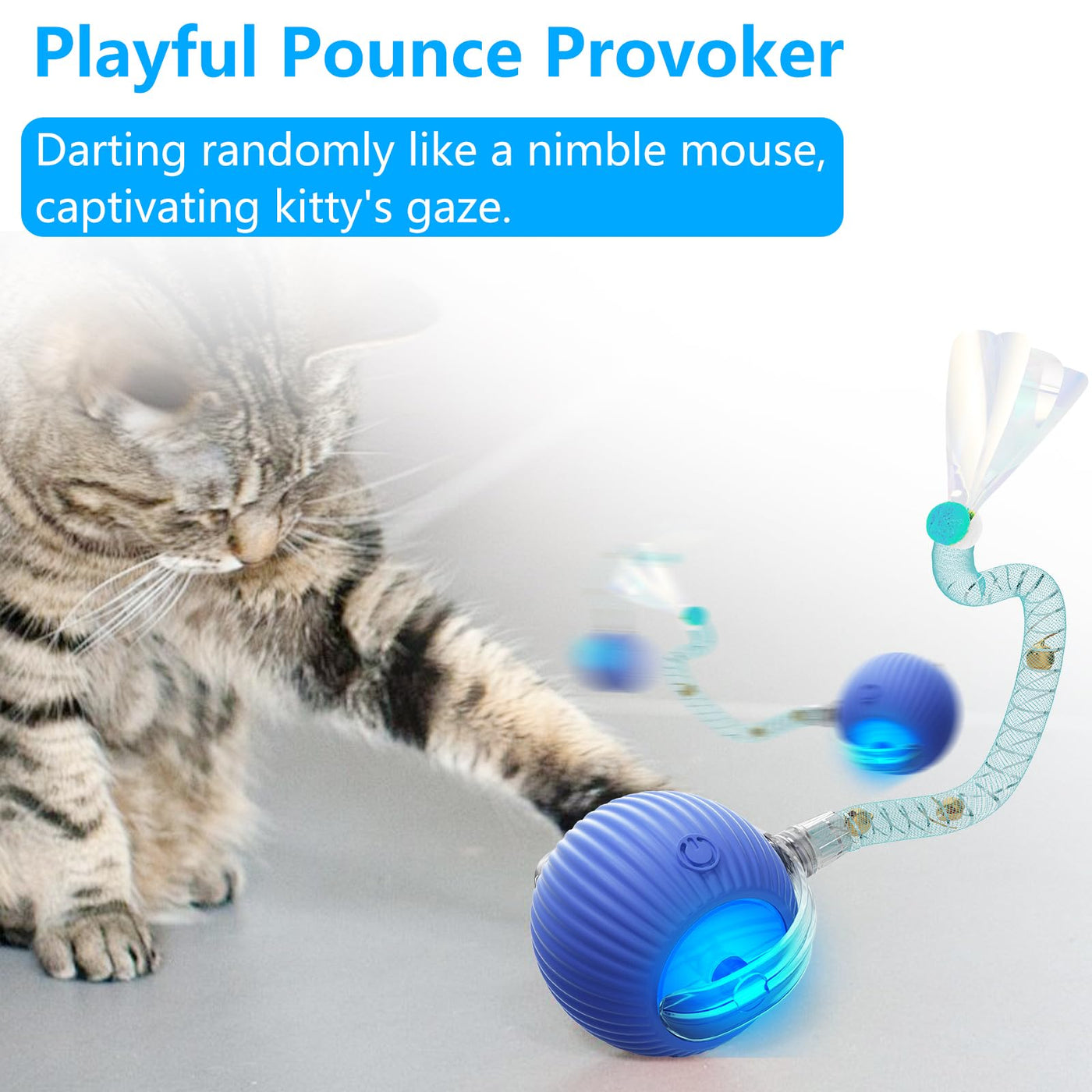 Interactive Cat Toys For Indoor Cats, 2025 New Generation Interactive Cat Ball Toy With Elastic Mesh Tail, Automatic Cat/Kitten Toys With Chirping & Motion Activate, Cat Toys For Bored Indoor(Blue)
