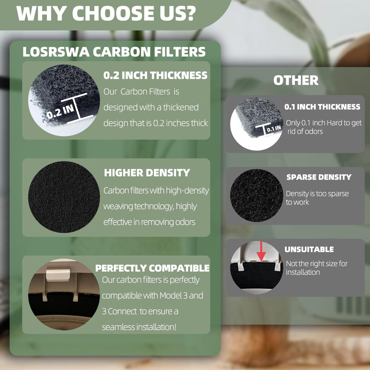 Losrswa 8 Pcs Carbon Filters Compatible With Litter-Robot 3,Activated Charcoal Replacement Filters - Premium, Durable, And Thick