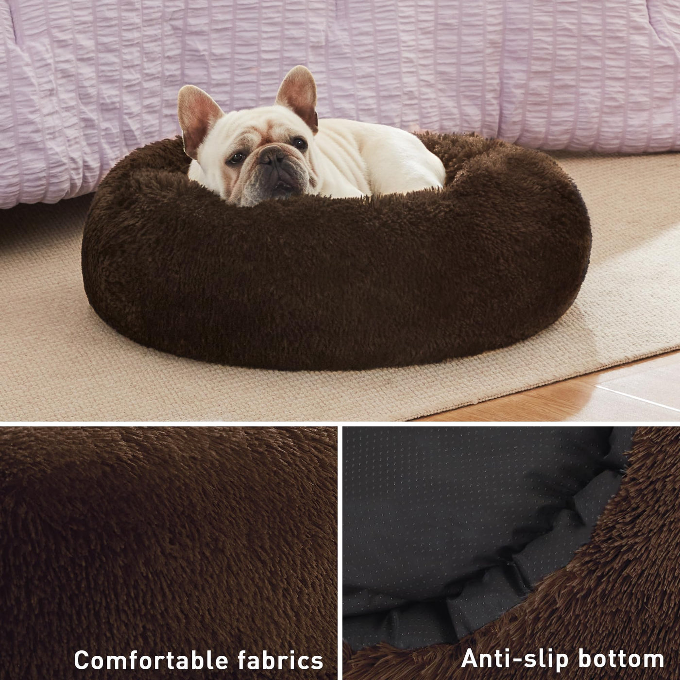 At Love'S Cabin, We Strive To Provide High-End, Functional Products To Our Fluffy Friends. Each Pet Bed Is Compress-Packed Because We Want You To Spend Money On The Quality Of The Product Itself, Rather Than The Delivery Freight. Upon Receipt Of Your New Pet Bed, Please Take Them Out Of The Packaging, Shake Them Out, And Let Them Regain Shape Overnight Before Your Furry Friends Maximum Enjoyment.Easy Caresimply Toss The Whole Bed In (No Need To Remove Cover), Wash On Gentle Cycle, And Tumble Dry Low To Freshen Up Your Furry Friend'S Favorite Sleeping Spot!Safe & Trustedwe Focus On Quality & Safety, Strictly Adhering To Product Testing Requirements.Slip-Resistant Basesmall Silicone Dots On The Bottom Of The Bed Add Traction Control For When Your Bestie Goes Flying Into The Bed For Nap Time.Comfortable Donut Shapethe Raised Bolster Around The Edge Of The Bed Provides Plenty Of Head And Neck Support, While Deep Crevices Allow Your Pet To Burrow And Curl Up To Their Content.Perfect For Dogs & Catskitties And Pups Alike Will Fall In Love With Our Beds - Soft Faux-Fur Imitates A Mother'S Fur Coat To Create A Sense Of Warmth And Comfort.The Fluffy Pet Bed Is Perfect For Your Four-Legged Friend! Not Only Is The Shape Of This Bed Ideal For Those Furry Friends That Love To Curl Up, Its Also Made To Make Them Feel Like Royalty While Snoozing Away.The Round Donut Shape And High Rim Give Your Pup Or Kitty Great Head And Neck Support, While The Comfort Of Faux Fur Lulls Them Into A Deep Sleep.