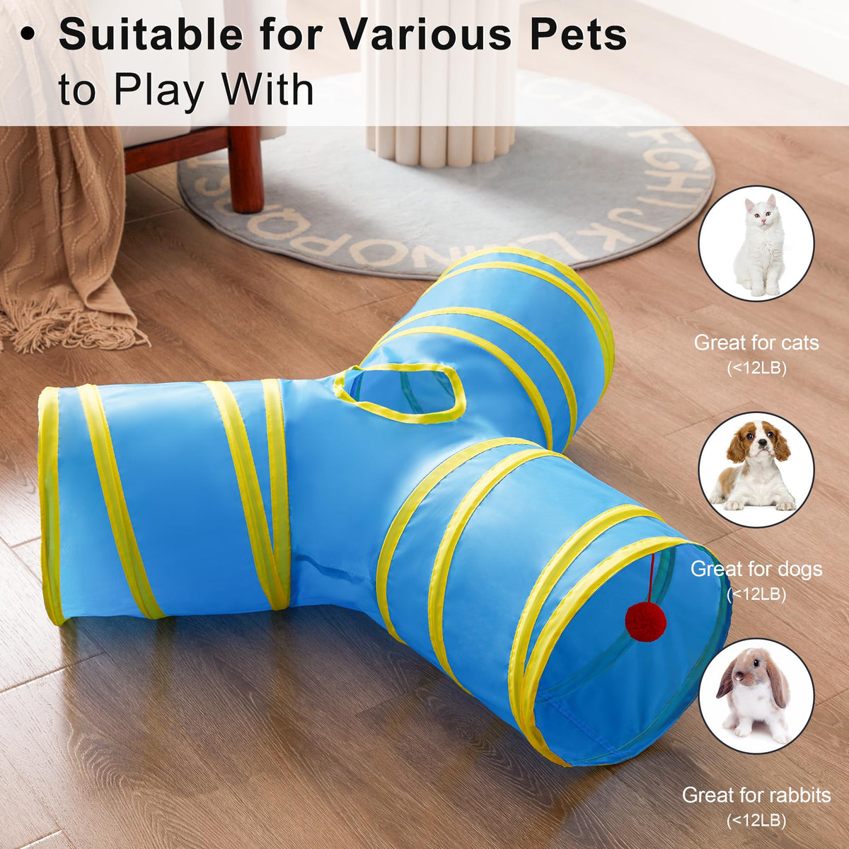 3 Way Cat Play Tunnel: Our Cat Tunnel With 3 Spacious Tunnels, Peephole And Ball Toy, This Popular Cat Toy Gives Your Kitty More Ways To Have Fun. It Is An Indoor Toy That Your Pet Deserves. Collapsible And Portable: Our Cat Toys For Indoor Cats Can Be Folded Down Small In Just A Few Seconds, Which Is Convenient For Traveling And Storage. Each Tube Is About 10 Inches Tall And 17 Inches Deep. Take The Entertainment With You Wherever You Go, So That Your Pet Will Never Be Bored! Safe And Strong: This Cat Tunnel For Indoor Cats Is Made By Wrapping An Ultra-Strong, Tear-Resistant Polyester Around A Spring Steel Frame With Protective Ends. This Fully-Enclosed Steel Frame Can Withstand The Most Energetic Games. Keep Your Pet Active: Compared With Cat Tents, Scratching Posts, Mouse Toys, Etc., Our Kitty Toys Provides The Most Interactive Fun With The Dangling Ball At The Exits, Which Is Truly A Great Way To Encourage Daily Exercise And Keep Your Pet Active. Dedicated Customer Service: Love'S Cabin Trademarked Products - No Risk Shopping. Love'S Cabin Strives To Provide 1-Month Return And Replacement Service & Life-Time Free Customer Service - We Want Our Customers To Be 100% Happy And Satisfied!