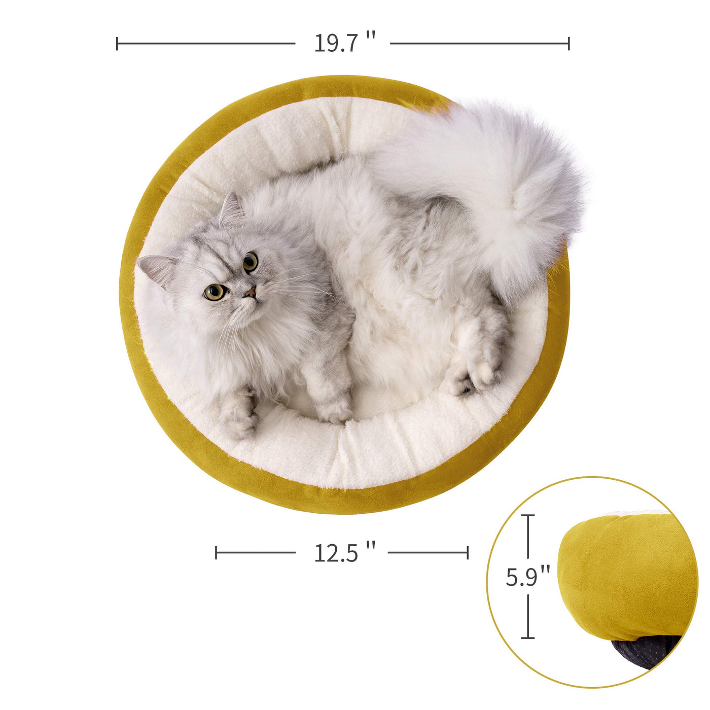 Love'S Cabin Round Donut Cat And Dog Cushion Bed, 20In Pet Bed For Cats Or Small Dogs, Anti-Slip & Water-Resistant Bottom, Super Soft Durable Fabric Pet Beds, Washable Luxury Cat & Dog Bed Yellow