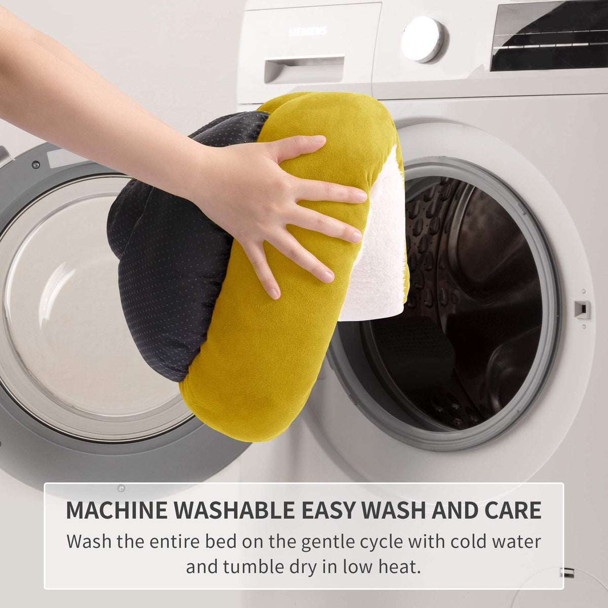Q: Is the Love's cabin pet bed machine washable?A: Yes, the Love's cabin pet bed is fully machine washable. For best results, wash the entire bed on a gentle cycle with cold water and tumble dry on low heat. This makes cleaning quick and convenient.