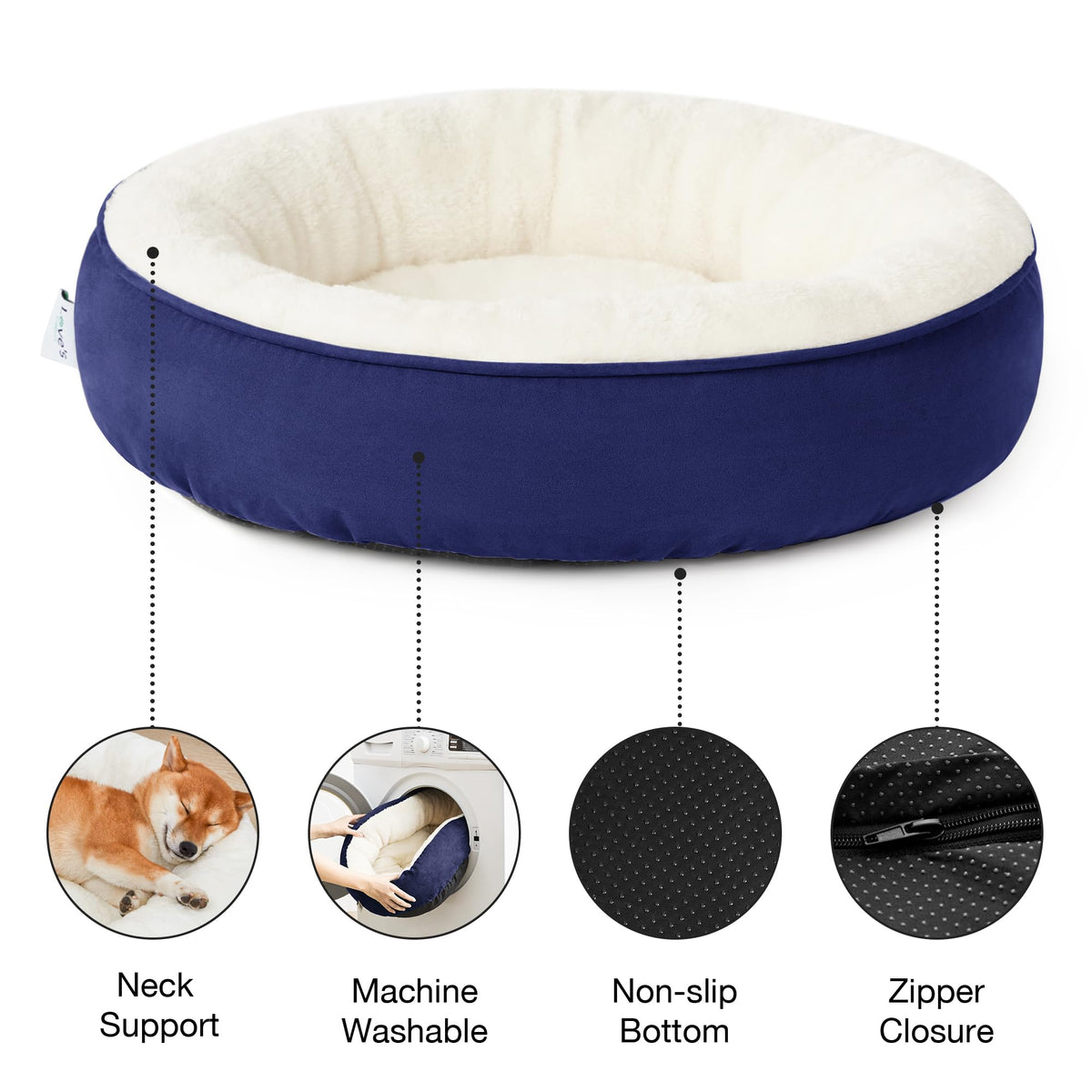 Love'S Cabin Round Donut Cat And Dog Cushion Bed, 25In Pet Bed For Small Or Medium Dogs, Anti-Slip & Water-Resistant Bottom, Soft Durable Fabric Pet Beds, Washable Calming Cat & Dog Bed Navy