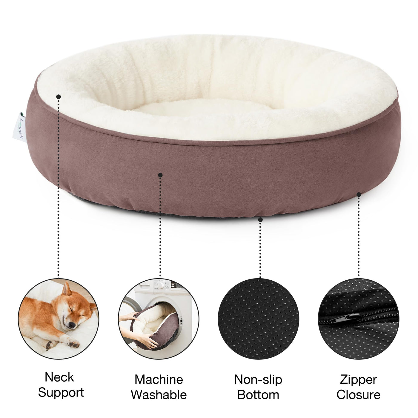 Comfortable And Cozy:Round Shape Is Great For Pets To Curl Up And Snuggle Down For A Peaceful Sleep. Raised Sides Provide Support For Pets' Head, Neck. The Padded Pillow Offers Relief For Stiff Joins And Tired Muscles. It Filled With High-Loft Polyester That Surround Pets To Promote Feelings Of Security.Machine Washable For Easy Cleaning:The Love'S Cabin Pet Bed Is Completely Machine Washable And Can Be Placed Within Standard Washers To Make Cleaning Quick And Convenient. The Bottom Of Kennel Is Non-Slip.Premium Material:The Pet Bed Combines Suede Fabric With Ample Fill For Cushy Softness, While Its High Quality Side And Bottom Supply Added Softness And Strength.Lightweight And Portable For Travel:The Love'S Cabin Pet Cuddler'S Polyester Construction Is Lightweight For Easy Transportation, Allowing Pets To Stay Comfortable During Travel. Not Only Easy To Place In The Trunk Or Backseat,But Also Can Be Used As A Kennel Or Crate Pad.Size:Available For Cats Or Small Sized Dogs.Tip:Pet Bed Can Be Cleaned Directly With Washing Machine, But Please Choose The Gentle Mode. This Bed Can Not Be Removable.