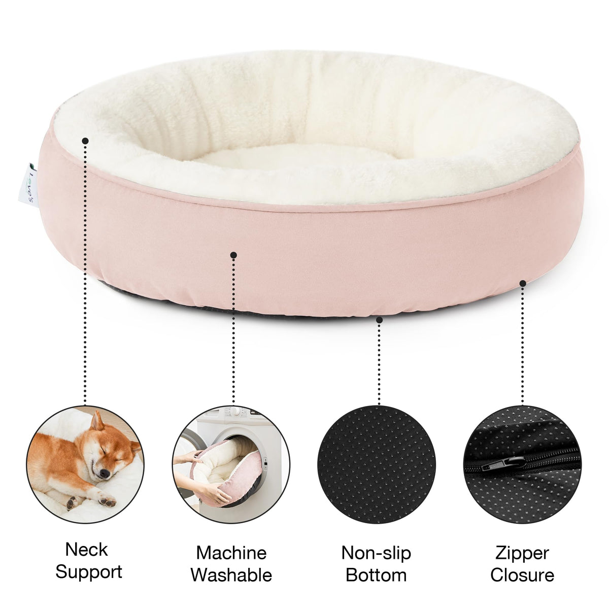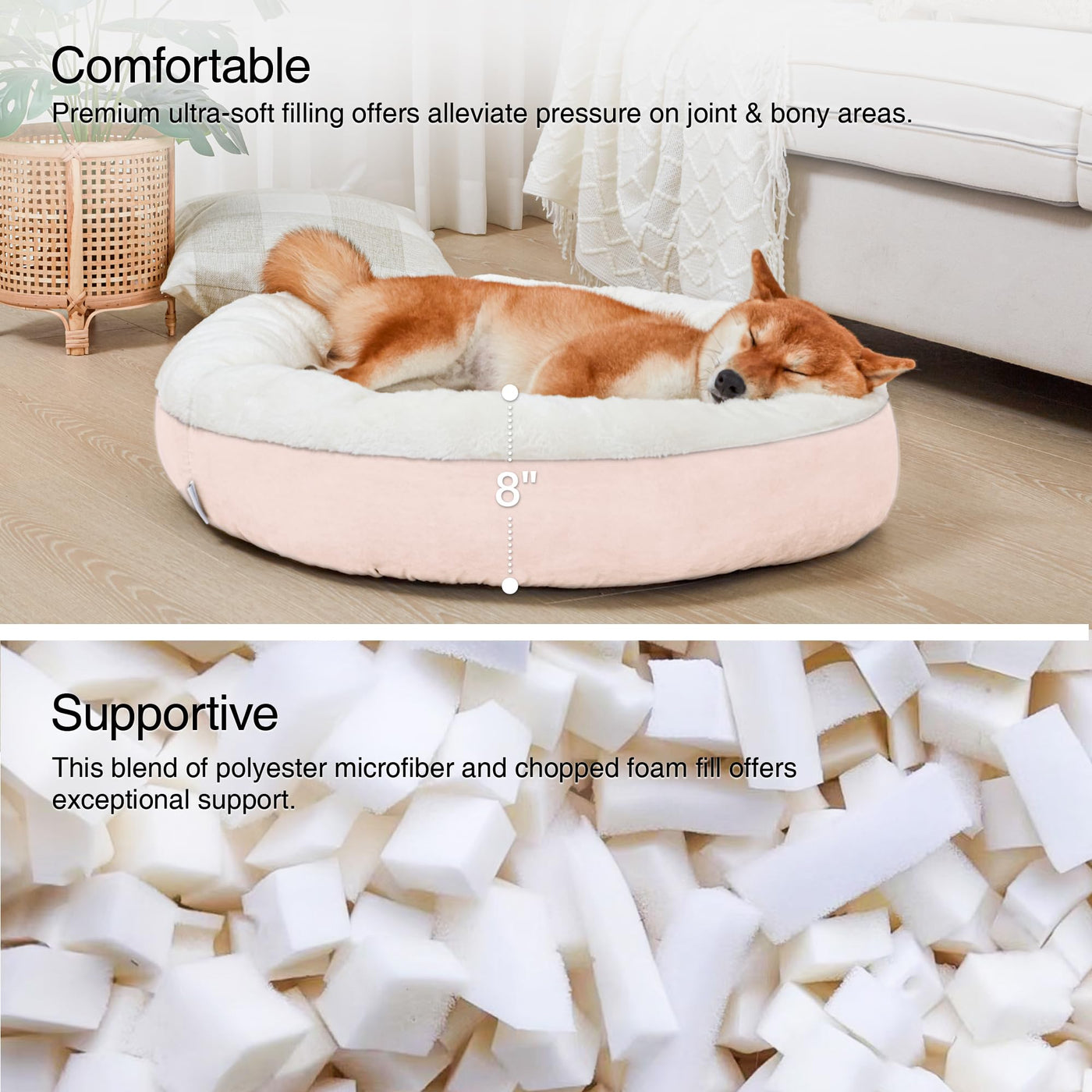 Love'S Cabin Round Donut Cat And Dog Cushion Bed, 30In Pet Bed For Medium Or Large Dogs, Anti-Slip & Water-Resistant Bottom, Soft Durable Fabric Pet Beds, Washable Calming Cat & Dog Bed Pink