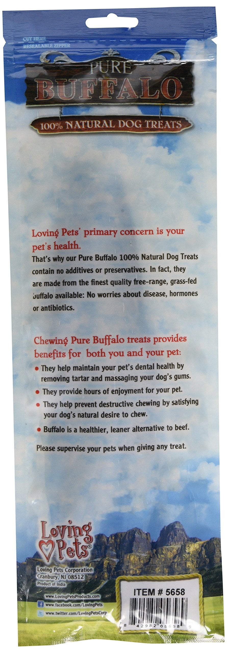 Loving Pets primary concern is your pets health Thats why our Pure Buffalo 100-percent Natural Dog Treats contain no additives or preservatives In fact, they are made from the finest quality free-range, grass-fed buffalo available No worries about disease, hormones or antibiotics Pure Buffalo 100-percent natural dog treats are available in many varieties and sizes including bones, bully sticks, braided sticks, meat strips, knuckles and lung steaks