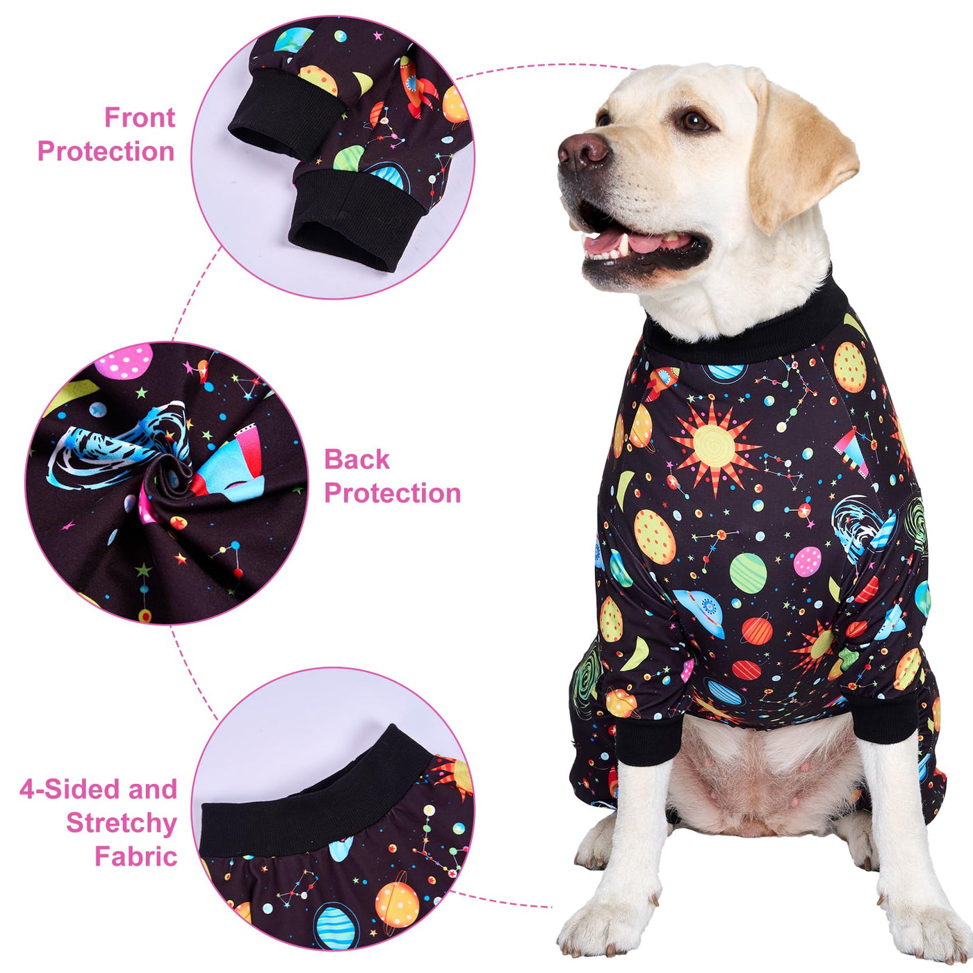 Lovinpet Big Dogs Onesies: Big Dog Pajamas, Post Surgery/Wound Care, Lightweight Stretchy Fabric, Interstellar Black Print, Dog Jumpsuit, Anti Licking, Pet Pj'S/Medium