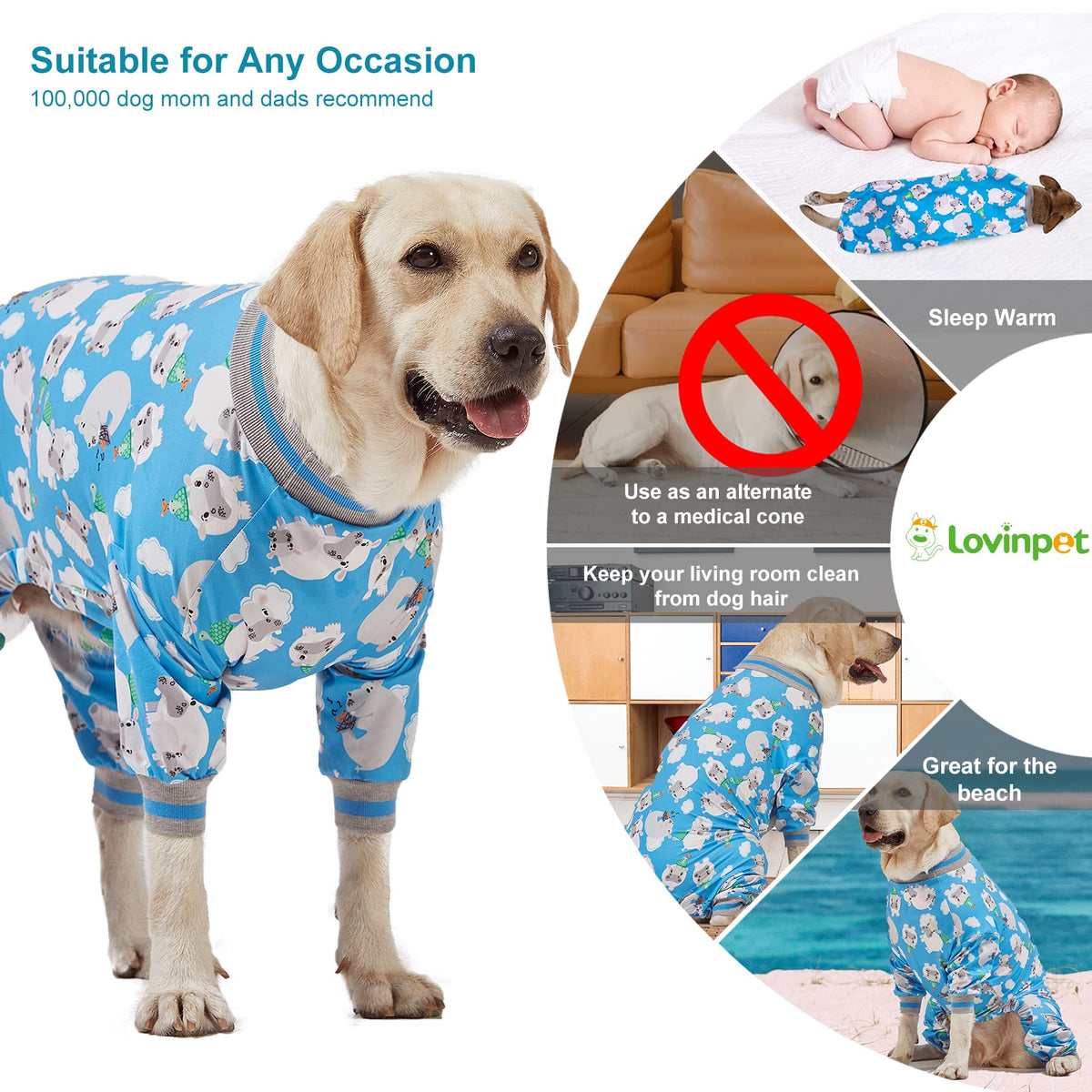 Lovinpet Large Dog Clothes/Big Dog Onesie, Slim Fit, Lightweight Pullover/Full Coverage Dog Pjs/Happy Hippo Blue Print/Large Breed Dog Pjs/Medium