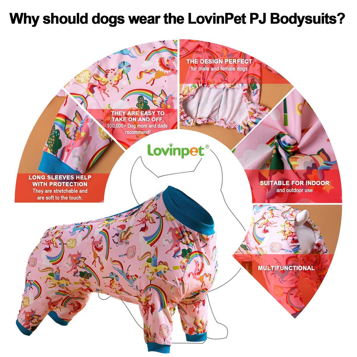 Lovinpet Large Size Dog Pajamas Onesie- Magic Rainbow Shine Pink Print, Lightweight Stretchy Knit Pullover Large Puppy Pajamas,