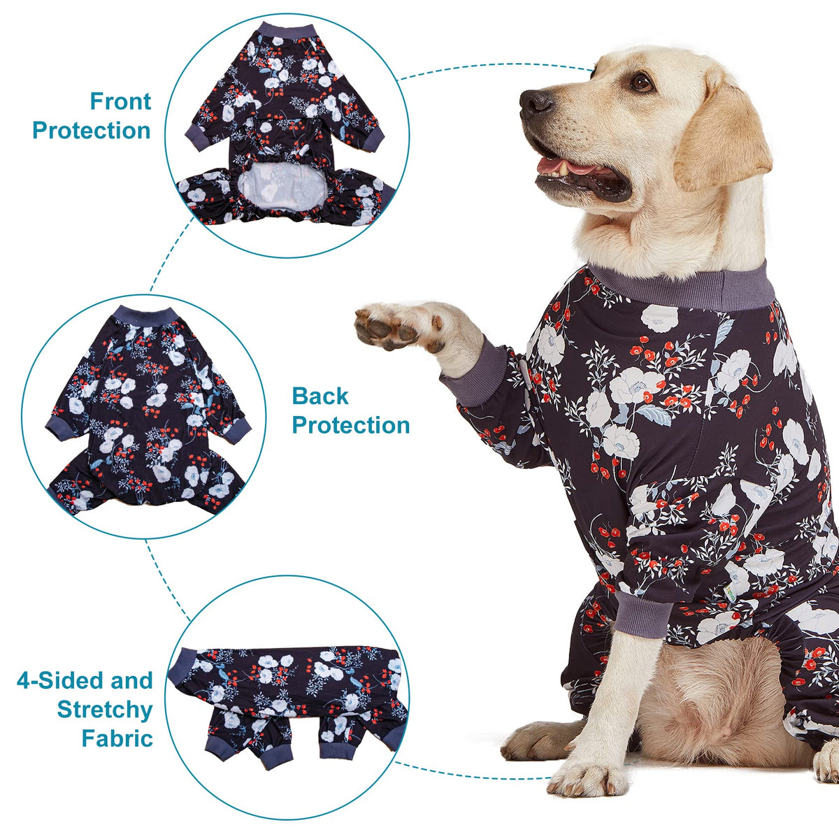 Lovinpet Specializes In Big Dog Pajamas Beautiful Bouquets Black Print, And We Strive To Support Animal Shelters. We Do Understand Dogs Are An Important Part Of The Family, So We Want To Help Owners Show Their Pets How Much They Love Them. Our Clothes Not Only&Nbsp;&Nbsp;Look Good; They Are Also Very Practical. We Believe Our Quality Will Exceed Your Expectations. &Nbsp; Special Design This Lovinpet Pajamas 3X Features A Unique Crew Neck Style It Can Be Used As Recovery Clothing After The Dog Has Surgery To Prevent Licking The Wound. When Your Dog Has Skin Problems, It Can Protect The Skin And Help With Treatment, So That Her Skin Can Recover As Soon As Possible. It Can Protect The Dog' S Privacy. For Example, If The Wound Is Obvious After Surgery, Or The Skin Is Sensitive, Wearing Cute Dog Pajamas Can Avoid Embarrassment And Let Our Dog Regain Self-Confidence Faster Our Dog Onsiese Adult Pjs Are Very Light. It Can Not Only Be Used As A Dog Pajamas For Sleeping, But Also As A Dog Anxiety Calming Shirt. You Can Choose Your Favorite Style And Pattern To Put On Your Dog And Take Some Special Commemorative Photos With Your Fur Baby.