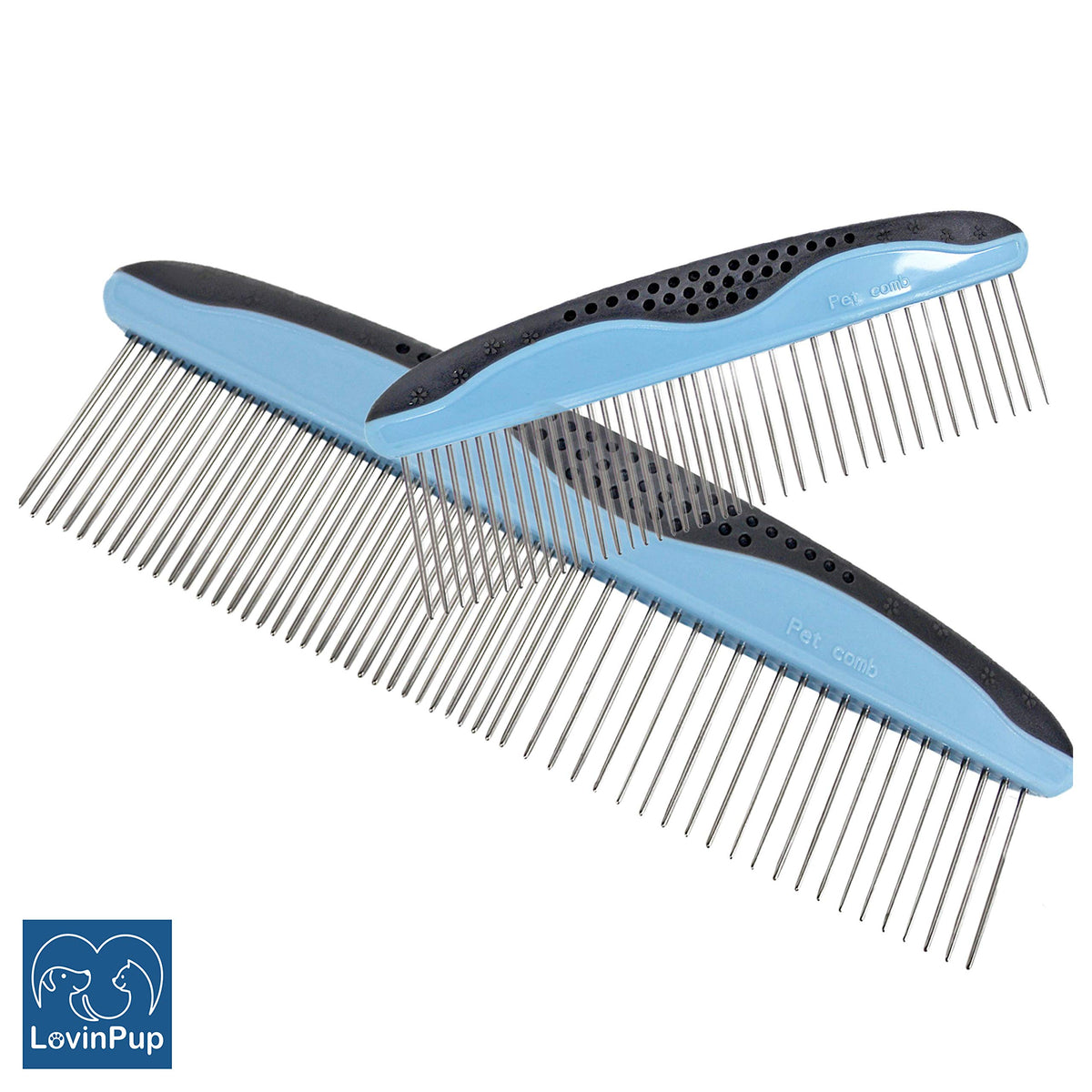 Lovinpup Dog Comb Set For Grooming, 2 Pack, Pet Grooming Comb With Stainless Steel Teeth, Comfort Grip Handle, Dog Grooming Supplies, Large Pet Comb And Small Pet Comb Included