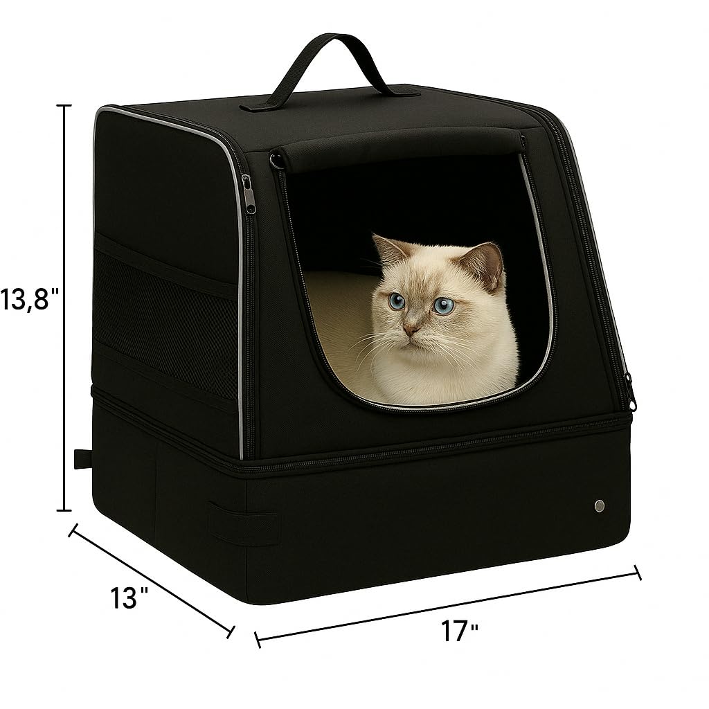 Loyareal Portable Travel Litter Box For Cats, Small Foldable Travel Cat Litter Box With Zipped Lid, No Smell, Waterproof, Leak-P