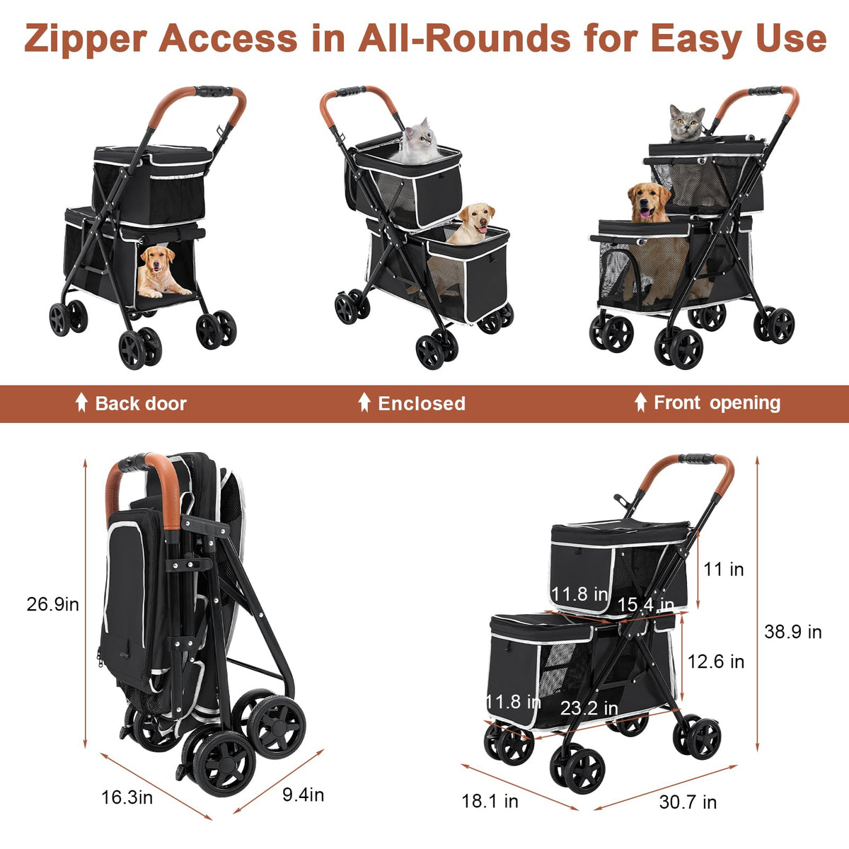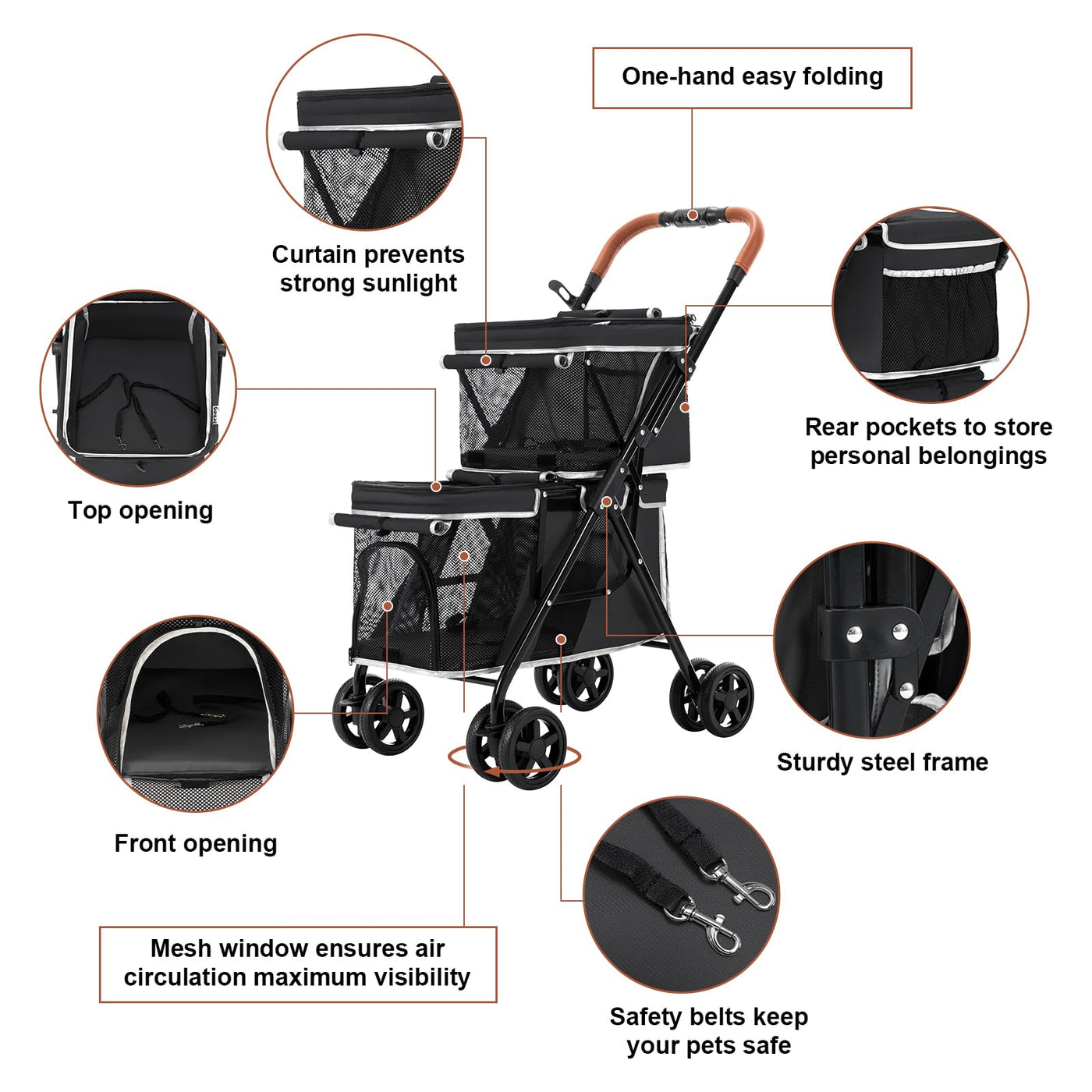 Our Double Layer Pet Stroller Is Designed To Provide The Epitome Of Comfort, Style, And Convenience For Pet Owners With More Than One Furry Companion. Double The Fun, Double The Comfort: Our Double Layer Pet Stroller Is Thoughtfully Designed With Two Spacious Compartments, Allowing Your Furry Duo To Ride Together In Pure Bliss. Now, They Can Enjoy The Great Outdoors Without Any Worries Or Jealous Glances. Unmatched Versatility: Our Stroller Is Crafted To Suit Various Lifestyles. Whether You Have Two Small Dogs, Two Cats, Or A Mix Of Both, Our Double Layer Design Ensures Ample Space For Each Of Your Pets To Snuggle Up Comfortably. Premium Quality And Durability: The High-Quality Materials Used In Our Stroller Ensure Long-Lasting Performance, So You Can Create Countless Cherished Memories With Your Furry Friends For Years To Come. Ventilated And Spacious: Our Stroller Features Large Mesh Windows On Both Layers, Offering Excellent Ventilation And Panoramic Views For Your Pets. They Can Soak In The Sights, Sounds, And Fresh Air While Staying Protected From Insects And Harsh Weather. Smooth Maneuverability: Equipped With Premium Swivel Wheels And A Comfortable Handlebar, Our Stroller Offers Effortless Navigation On Any Terrain. Whether You'Re Strolling Through The Park, Walking Along City Streets, Or Exploring Nature Trails, You'Ll Experience Unmatched Ease And Control. Let Your Furry Companions Experience The Luxury They Deserve. With Our Double Layer Pet Stroller, Every Outing Becomes A Memorable And Delightful Journey. The World Is Waiting For You And Your Beloved Pets To Explore Together.