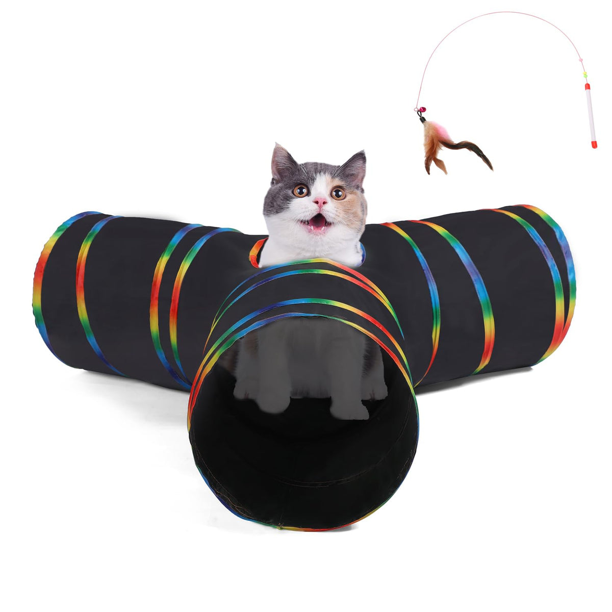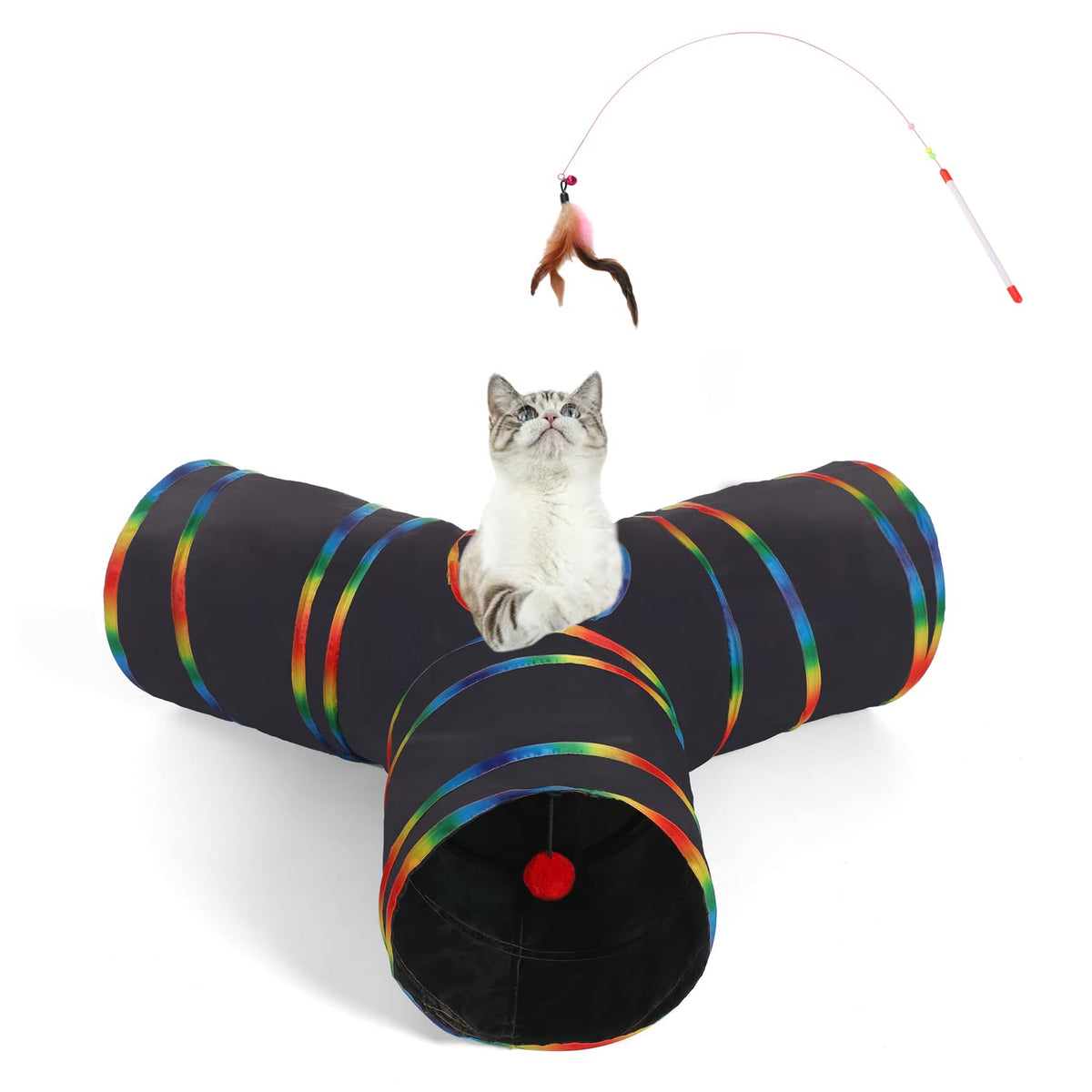 Cat Toys Collapsible 3 Ways Cat Tunnel Tube With Plush Balls,Black Why Choose Our Tunnel Toy For Cats? 1.Great Ventilation:Vent On The Top So That Cats Can Freely Get In And Out Of The Tunnel. Meanwhile They Can Have Better Interaction With You And The Environment. 2.Linking Buttons :You Can Connect Two Or More Tunnels Together To Form A Long And Fun One. 3.Foldable Design :It Can Be Folded To Save Space At Your Home. 4.We Are An Old Cat Tunnel Manufacturer, We Provide Cat Tunnels Of Various Sizes And Shapes.