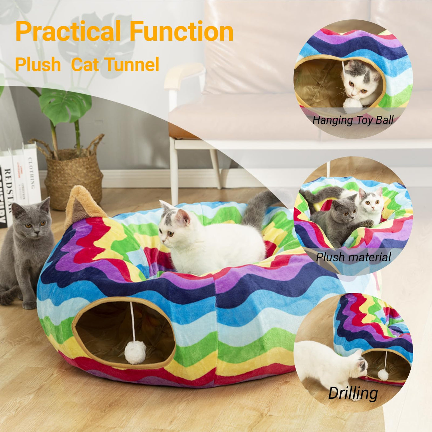 Luckitty Large Cat Tunnel Bed With Plush Cover,Fluffy Toy Balls, Small Cushion And Flexible Design- 10 Inch Diameter, 3 Ft Lengt