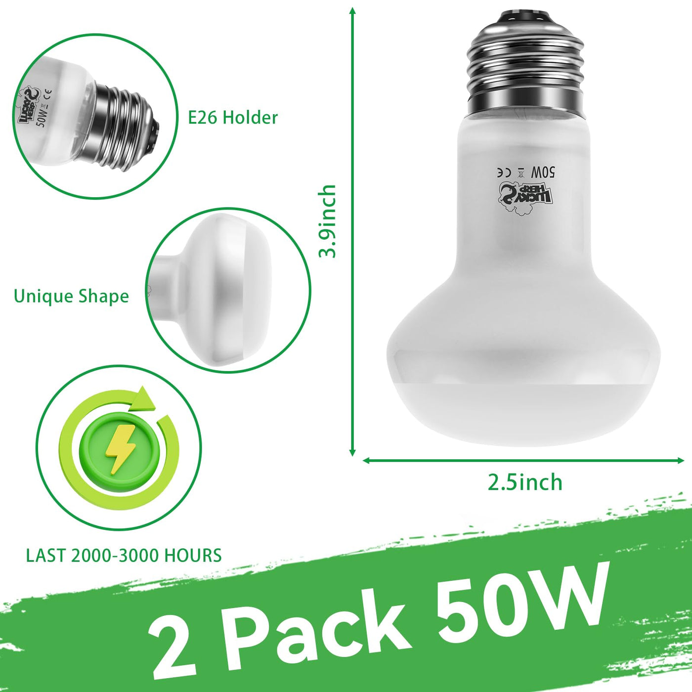 Is your reptile pet suffering from a loss of appetite and dull skin color? This means that it lacks the necessary UVA light and heat. In nature, reptiles use sunlight to increase body temperature and regulate physiological functions. As for indoor breeding reptile pets, because the lack of enough light, they are not provided with an appropriate environmental temperature, there's the trouble of developing chronic diseases. The addition of our heat lamp bulbs solve this problem for reptiles.Welcome to our new flat-bottom basking light for reptiles, an impressive new model that combines luxury with functionality.Our reptile basking bulb can simulate the closest to natural sunlight, and newly added a 30-degree angle luminous design, which can gather 30% more UVA light and heat than ordinary heat lamps. It can quickly heat up the temperature of the terrarium and create bright light like the sun, forming the best sunbathing environment. Thereby promoting the appetite, digestion and metabolism of reptiles, keeping them healthy.At the same time, the silver appearance gives it a unique sense of luxury, so that your reptile pet breeding environment is more refined and noble. The flat bottom design provides greater capacity for the interior space, allowing for a more even distribution of the temperature inside the heat bulb to extend the life of the reptile heat bulb and reduce the risk of bursting. Buy our flat-bottom reptile heat lamp and you'll get a top-of-the-line product that combines luxury with efficient features. Not only does it provide a warmer area, but it also has excellent safety and life extension features. This heat lamp bulbs for reptiles will provide a comfortable, warm and safe home for your reptile pet. 2 pack design whether as a spare replacement or to meet the needs of multiple feeding environments, our products meet your needs. Make sure your pet gets constant warmth and comfort.Give your pet our heat lamp, your pet deserves the best.