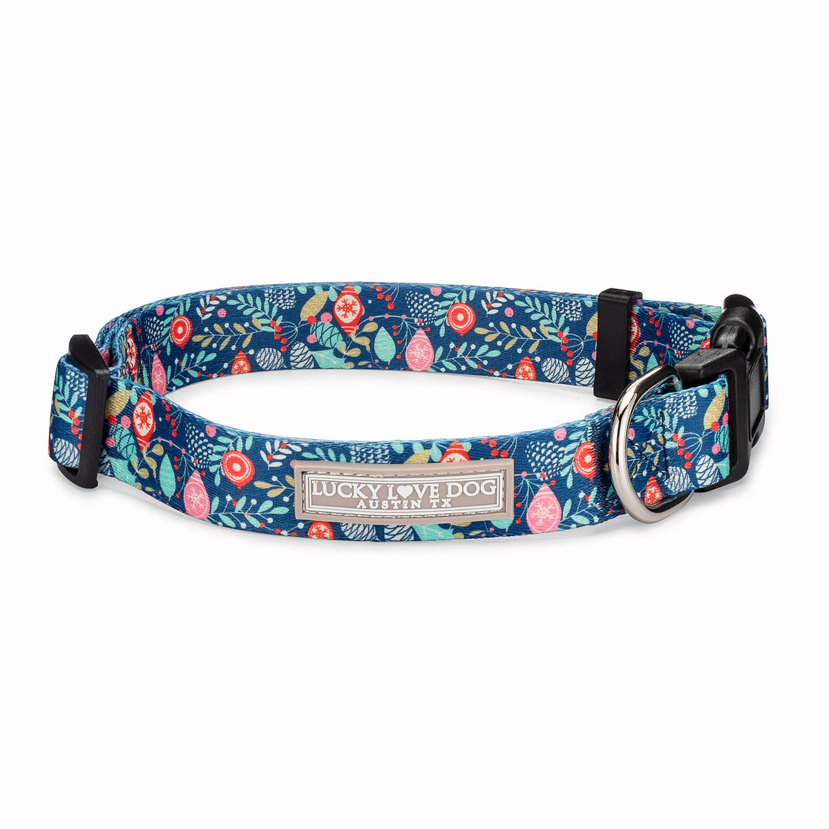 Q: What materials are used in the Lucky Love Dog collar?A: The Lucky Love Dog collar is made from high-density nylon, which is durable and weatherproof. This material provides strength and comfort, making it suitable for daily wear and outdoor activities.