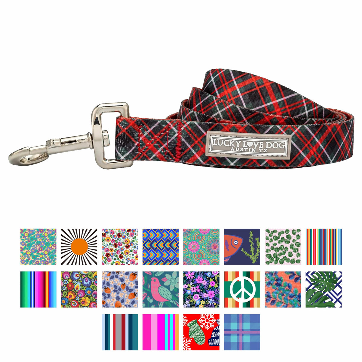 Lucky Love Dog Beautiful Evergreen Leash - Vivid Berry Plaid For Boy And Girl Dogs (Small, Heywood)