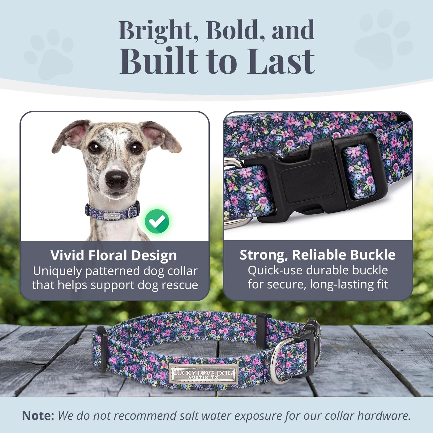 Q: What makes the Lucky Love Dog collar special?A: The Lucky Love Dog collar stands out due to its unique and stylish floral designs that reflect your pet’s personality. Additionally, a portion of each purchase goes towards saving shelter dogs, making it a meaningful choice for pet owners who care about animal welfare.