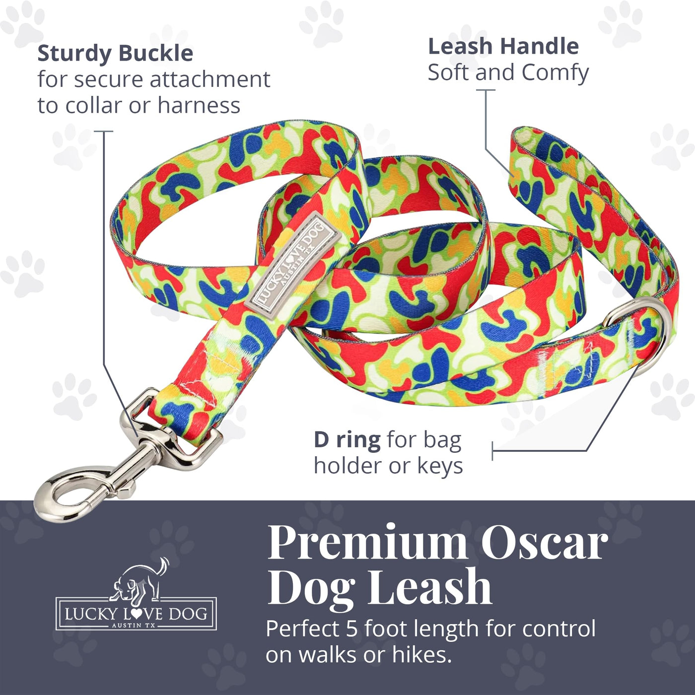 Lucky Love Dog Leash, Pattern Oscar Dog Leash, Small, Durable & Long Lasting (Oscar, Small)