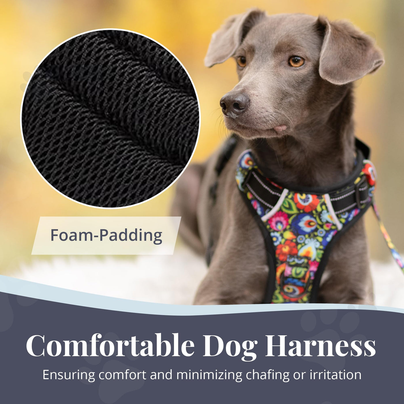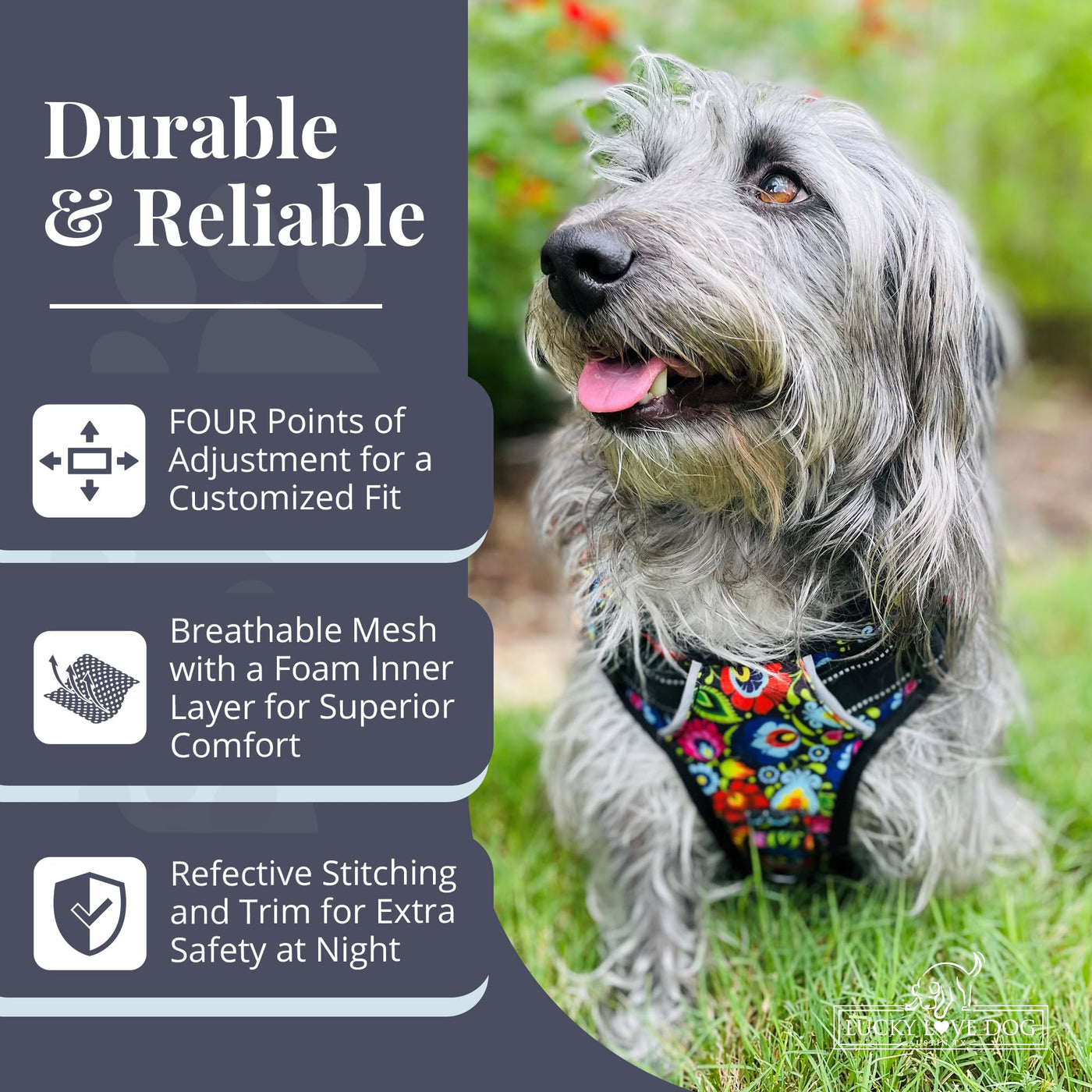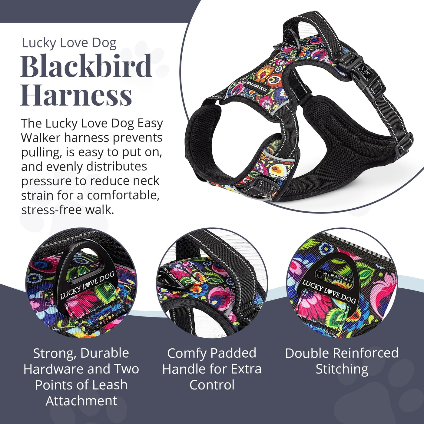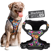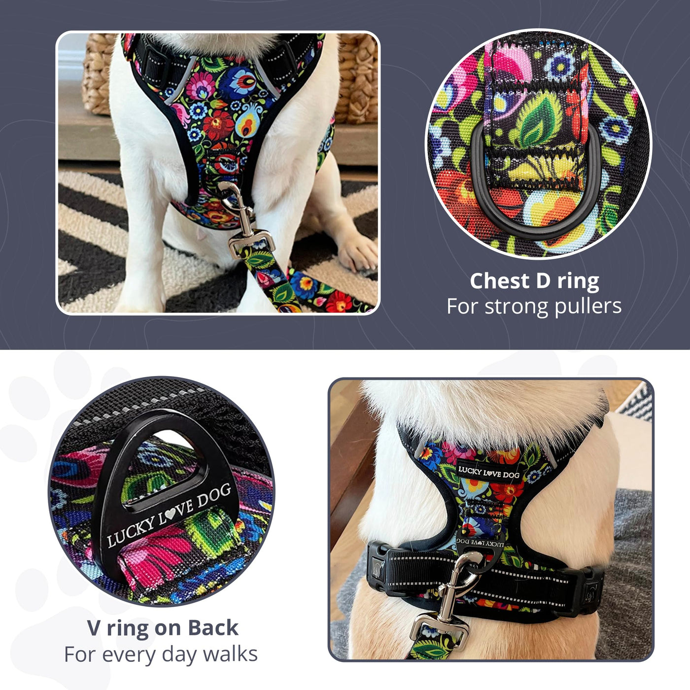 Lucky Love Dog No Pull Dog Harness, Adjustable And Easy To Walk, Black & Purple Floral Pattern Dog Harness For Small Medium Larg