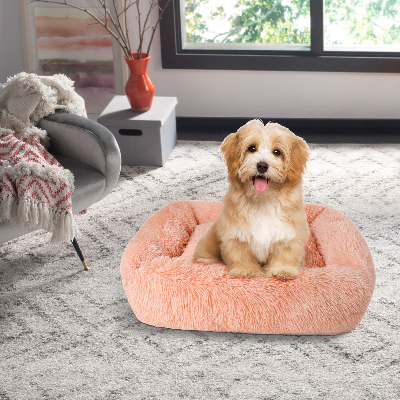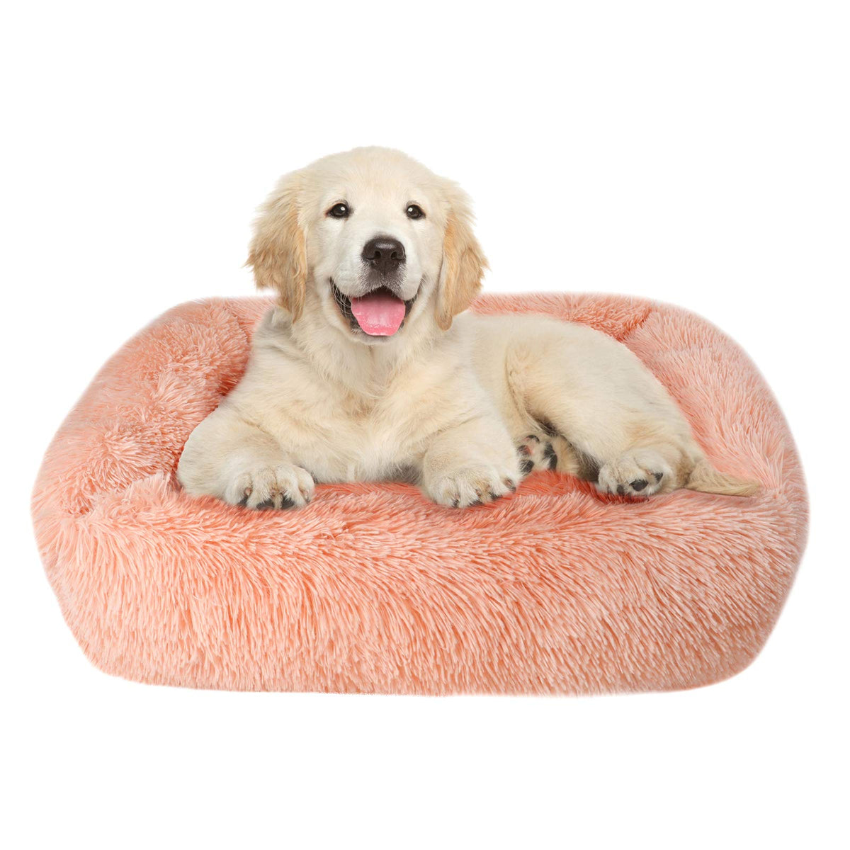 Lucky Monet Large Dog Bed 31.5 X 27.6, Fluffy Calming Cat Bed, Washable With Sides, Soft Crate For Sleeping (L, Pink)