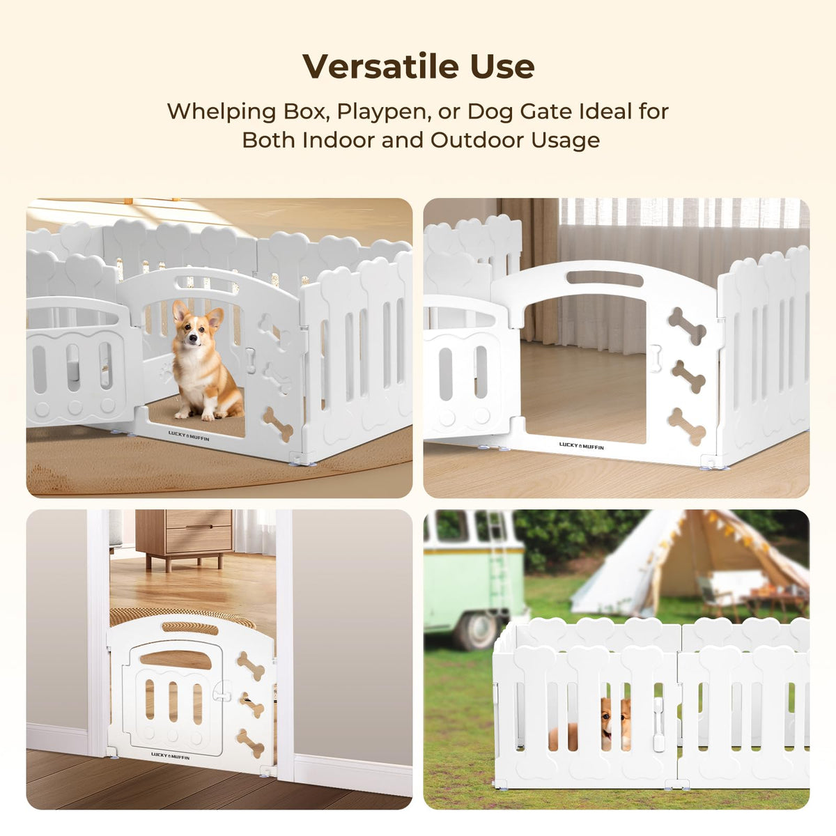Lucky Muffin Dog Playpen With Door & Whelping Box, 8-Panel Lightweight Plastic Fence For Small To Medium Pets, Indoor/Outdoor Us