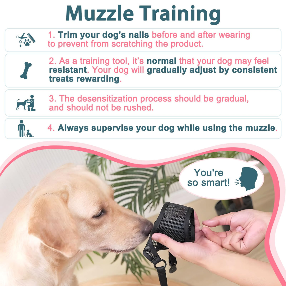 Luckypaw Soft & Durable Dog Muzzle-Different From Traditional Mesh Muzzle, Our Upgraded Mesh Muzzle Can Be More Breathable Even In Hot Summer. Your Dog Can Play, Run And Sniff Nature With Ease. Why Do You Choose Our Breathable Dog Muzzle? Dog Friendly-The Soft Lightweight Mesh Fabric Is More Comfortable, Burden-Free, And Easier To Be Acceptable By Dogs. Let Dogs Get Along With People In Harmony. How To Acclimate Your Dog To A Muzzle: ?Let The Dog Sniff The Dog Muzzle And Treat. ?Put It On His Nose, And Make The Dog Interested In It. Give Treats. ?When Your Dog Feels Relaxed Put It On And Fasten The Strap, Adjusting The Suitable Neck Circumference For The Dog. ?Put It On, Fasten, And Count Slowly To Five. Treat. Remove And Repeat. Warm Reminder: ?Dont Wear The Muzzle For A Long Time Without Your Supervision. ?This Dog'S Muzzle May Have Some Odor Due To The Sealing Of The Transport. But Please Dont Worry, The Odor Will Disappear After A Few Cleanings. Package Includes: 1 * Dog Muzzle 1*Wearing Instruction