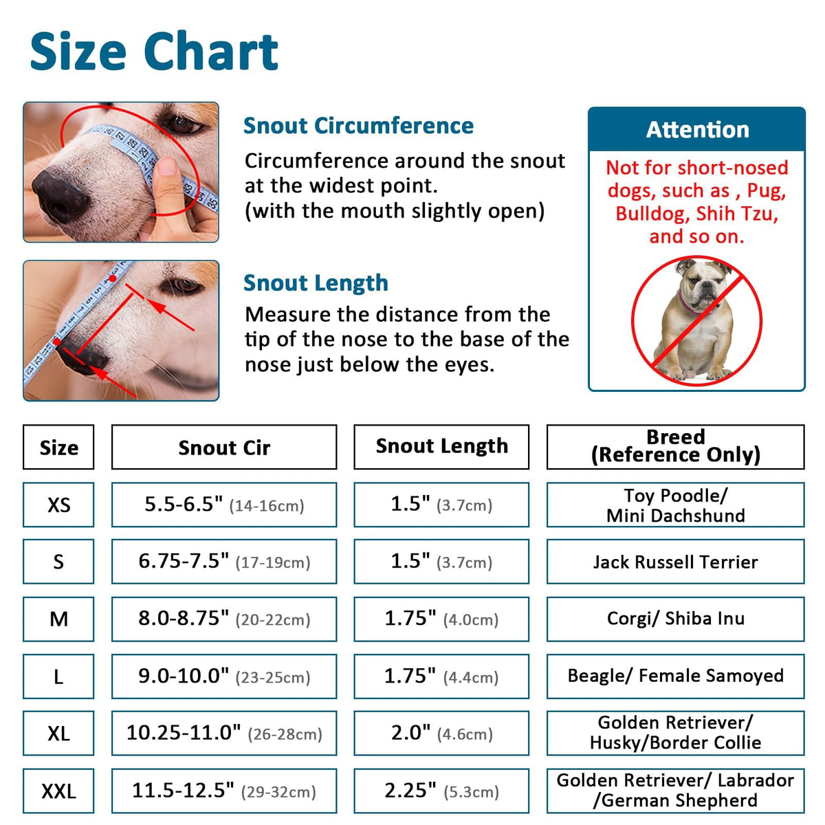Luckypaw Mesh Dog Muzzle: Compared With The Traditional Muzzle, Our Mesh Muzzle Is Designed With Ventilated Material, Which Makes Your Dog Enjoy A Secure & Burden-Free Walk.How To Acclimate Your Dog To A Muzzle:- Let Your Dog Sniff The Muzzle To Show It'S Not Bad. Touch Your Dog'S Nose With The Muzzle. Then Reward Treats.- Hold The Muzzle In Front Of Your Dog'S Face And Put Some Treats Inside The Muzzle. Your Dog Will Stick Its Nose Inside The Muzzle And Eat Treats.-Repeat A Few Times Until Your Dog Feels Relaxed.-Put On The Muzzle, Fasten The Buckle, And Adjust The Suitable Neck Circumference For Your Dog.-Count Slowly To Five. Treat. Remove And Repeat A Few Times.Warm Reminder:-Don'T Wear The Muzzle For A Long Time Without Your Supervision.-Correctly Wear The Dog Muzzle After Reading The Wearing Instruction.-It Takes About 2 Weeks For Your Dog To Get Used To Wearing A Muzzle For The First Time. Don'T Force Him/ Her To Cause Disgust.Package Include: 1 * Mesh Dog Muzzle 1*Wearing Instruction