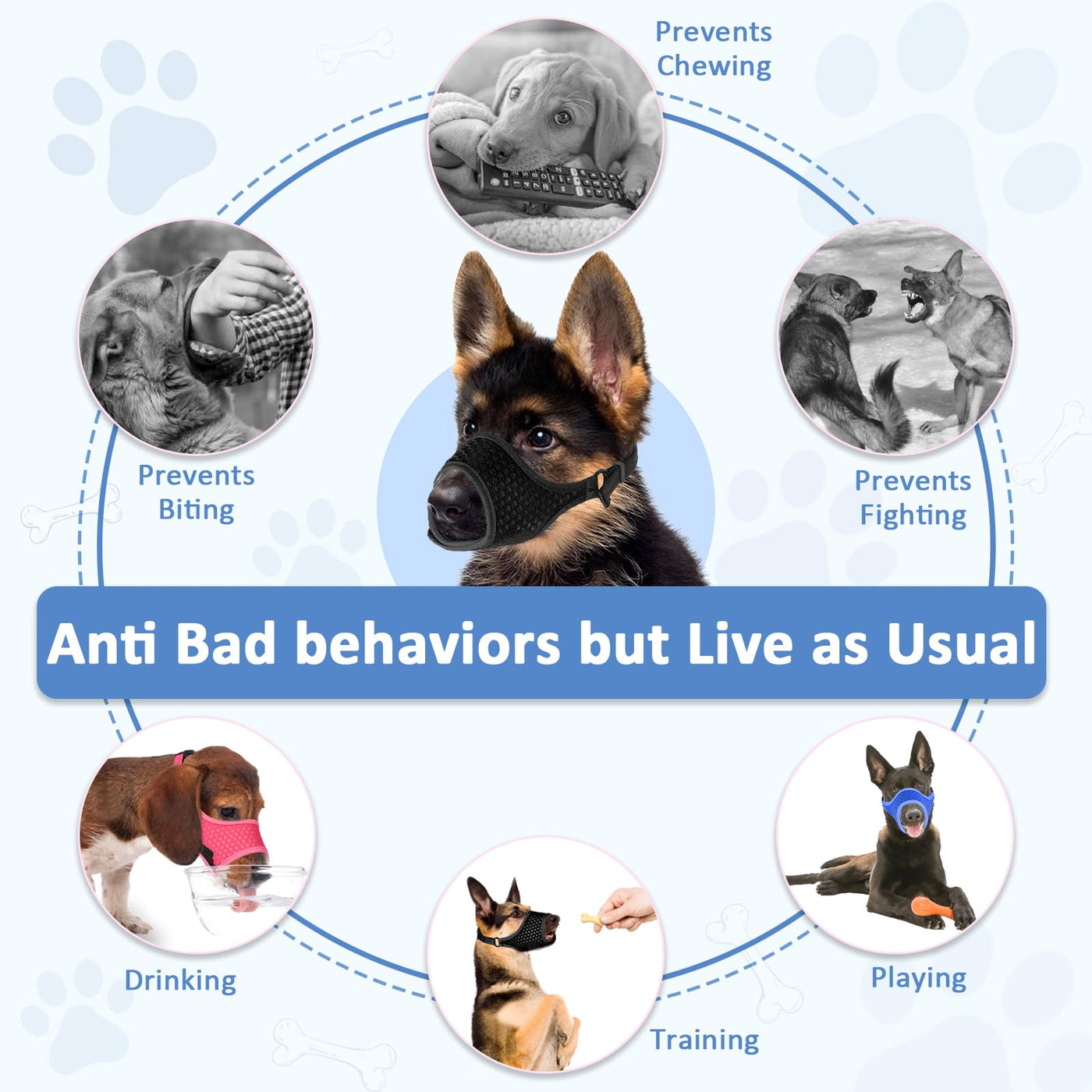 LUCKYPAW Soft & Durable Dog Muzzle-Different from traditional fabric muzzle, our upgraded cloth muzzle can be more breathable even in hot summer. Your dog can play, run and sniff nature with ease. Why do you choose our breathable dog muzzle? Dog friendly-The soft lightweight mesh fabric is more comfortable, zero burden, and easier to be acceptable by dogs. Let dogs get along with people in harmony. How to acclimate your dog to a muzzle: ?Let the dog sniff the dog muzzle and treat. ?Put it on his nose, and make the dog interested in it. Give treats. ?When your dog feels relaxed put it on and fasten the strap, adjusting the suitable neck circumference for the dog. ?Put it on, fasten, and count slowly to five. Treat. Remove and repeat. Warm Reminder: ?Dont wear the muzzle for a long time without your supervision. ?This dog's muzzle may have some odor due to the sealing of the transport. But please dont worry, the odor will disappear after a few cleanings. Package Includes: 1 * Dog Muzzle 1*Wearing Instruction