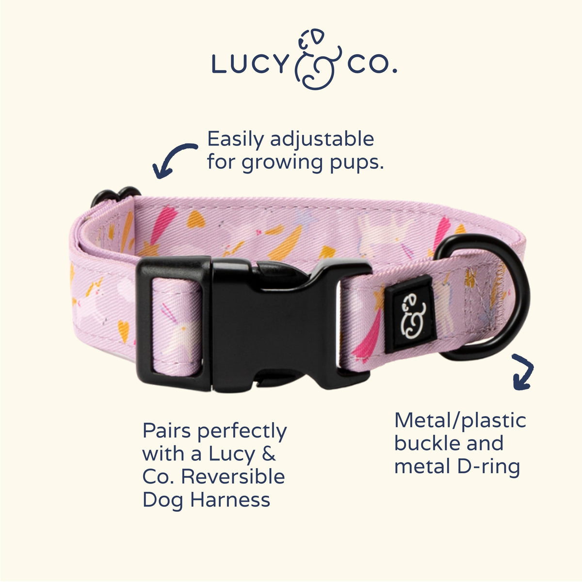 Lucy & Co. Unicorn Magic Dog Collar - Durable Lightweight Designer Collar For Pets - Adjustable Metal Safety Buckle (Medium, Pur