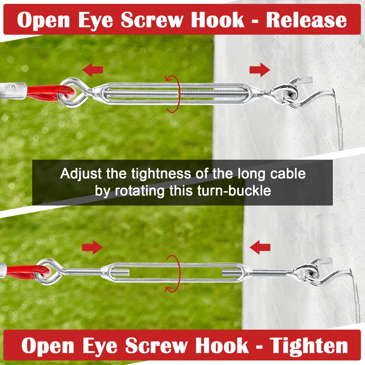 3. 50ft/100ft/120ft/150ft/200ftt galvanized steel leash is coated with crack-resistant poly vinyl to stay strong against pulling, weatherproof chrome-plated coating to prevent rust, and easy to clean.
