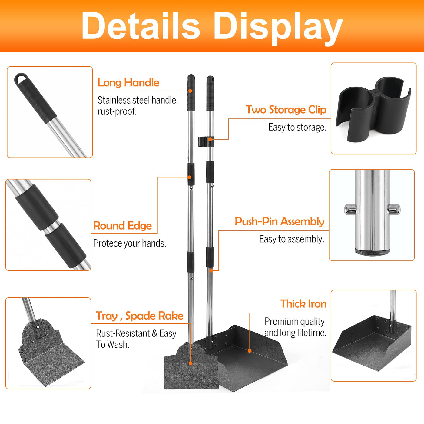 Pet Poop Tray & Spade,Perfect Dog Poop Scooper, An Indispensable Artifact For Dog Owners Why Choose Us: Stronger And More Durable: More Thicker Stainless Steel Tubes ,Boasts A Rustproof, Lightweight Stainless Steel Constructionthe Tray And Spade Not Only Made Of Aluminum But Also Their Hardness And Thickness Of All Increased By 50%The Width Of The Tray Also Increased By 50% Humanized Design:You Dont Need To Bend Over To Clean Up Pet Waste,Allows Quick Pick-Up And Transport Of Dog Poop In Different Situation Without Bending Adjustable 3-Section Handle So That You Can Choose The Length For You Needthe Tightly Clip-On Connections Make It Solid So Nothing Moves Around While You Are Using It Adjustable And Detachable:You Can Adjust The Handle Length According To Your Needs,The Molded Grip Handle Reaches Up To 38Adetachable Handle Save Space,Snaps Together And Integrated Hanging Hook For Convenient Storage Careful Design:Unique Clip-On Structure And More Reliable Locking Make The Dog Pooper Scooper Never Spin Around Or Falling Apart Easy To Clean:Slick Metal Surface Treated With An Anti-Stick Coating For Convenient Cleaning Without The Need Of Countless Plastic Bag Package Including: 3 Tubes In Afor Dustpana 3 Tubes In For Spade 1 Pc Link 1 Pc Tray 1 Pc Spade