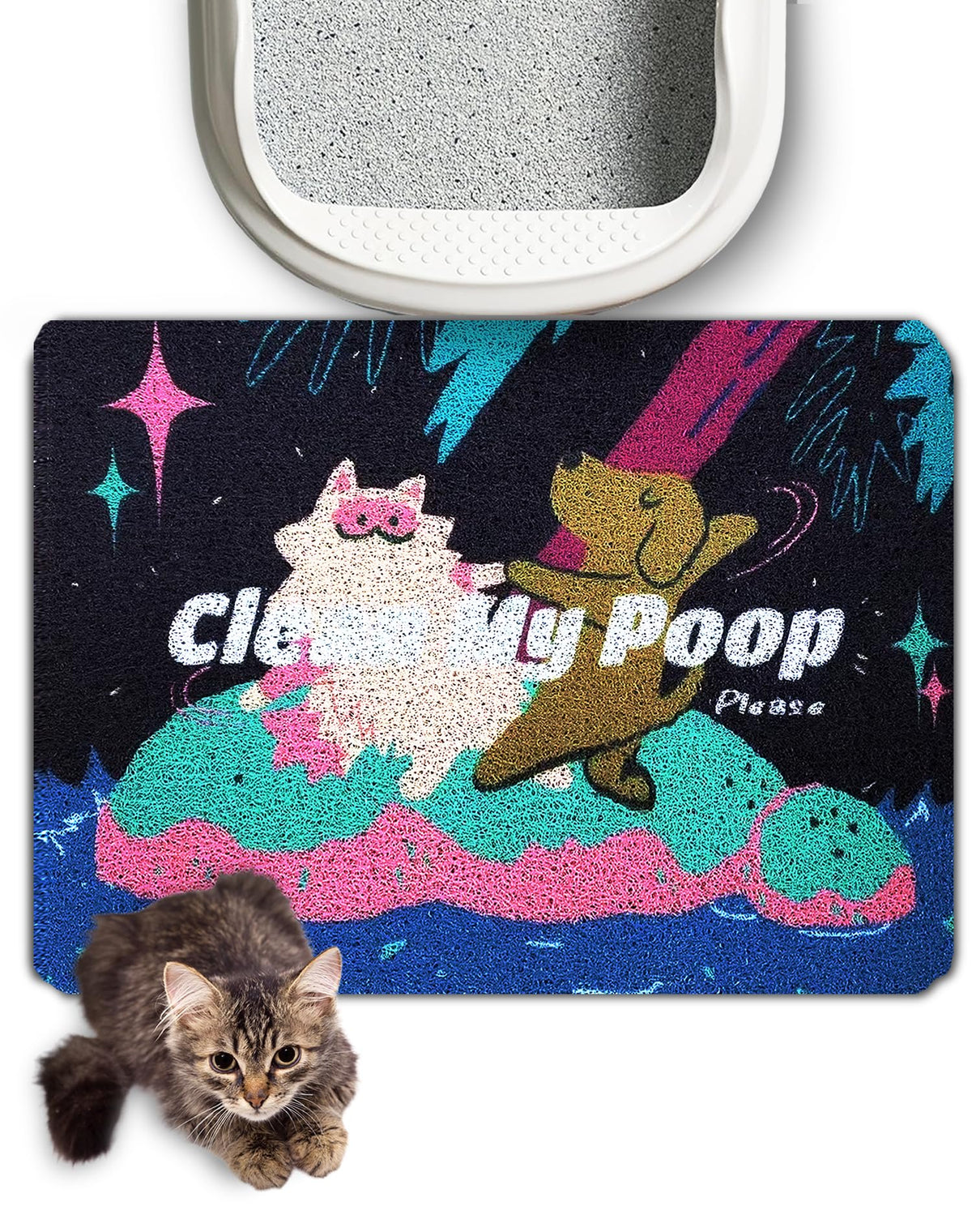 Lukamoo Cute Cat Litter Mat (24X16), For Kitty Litter & Cat Litter Box, Independent Artist Designed (Island Waltz)