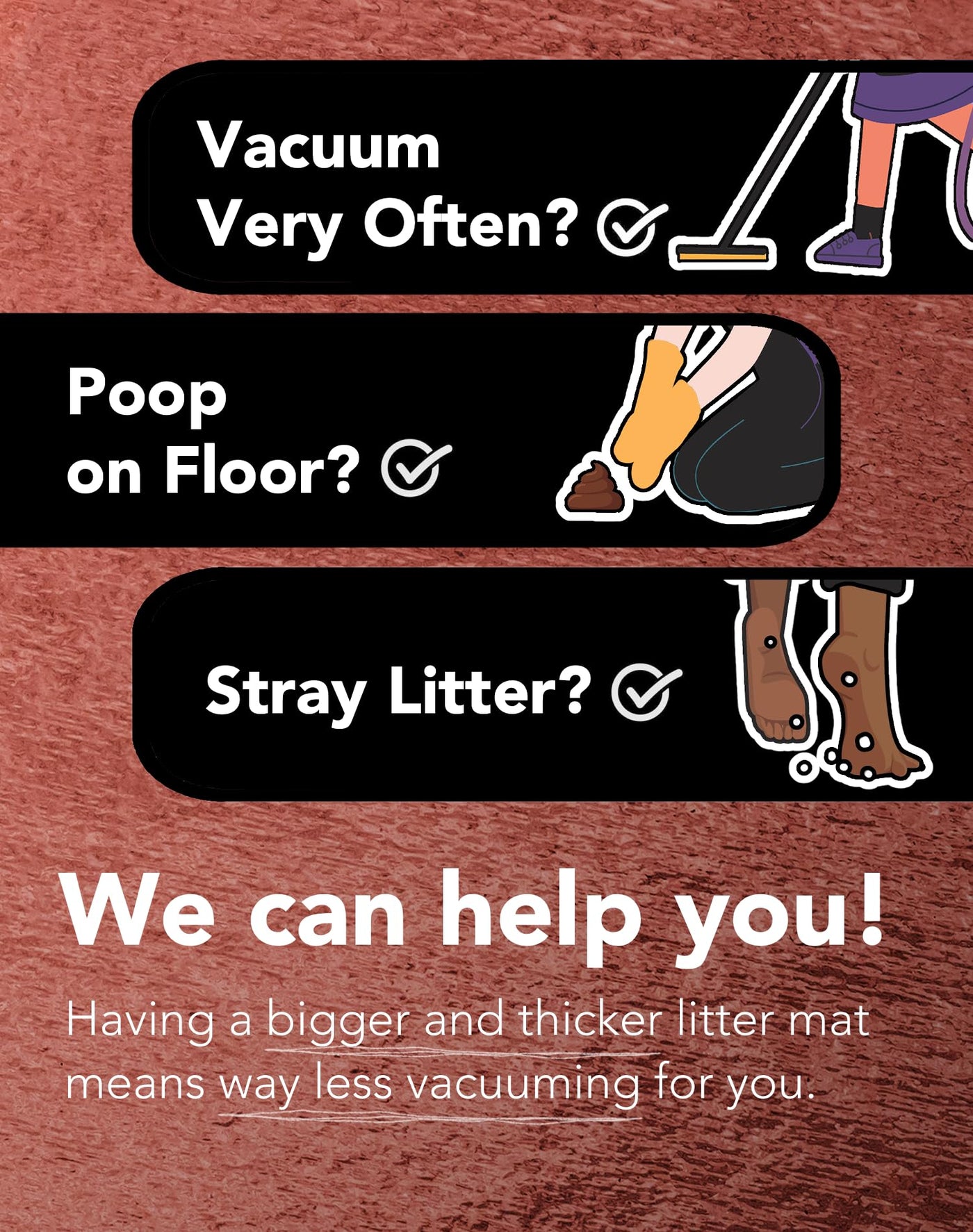 Introducing our litter mat: Designed for convenience The unique geometric net structure captures stray litter eliminating frequent emptying Sized at 24 x 32 (60 x 90 cm) it offers unbeatable floor protection for single-entry litter boxes Waterproof and anti-slip with easy clean-up Premium quality crafted with care in Toronto cruelty-free