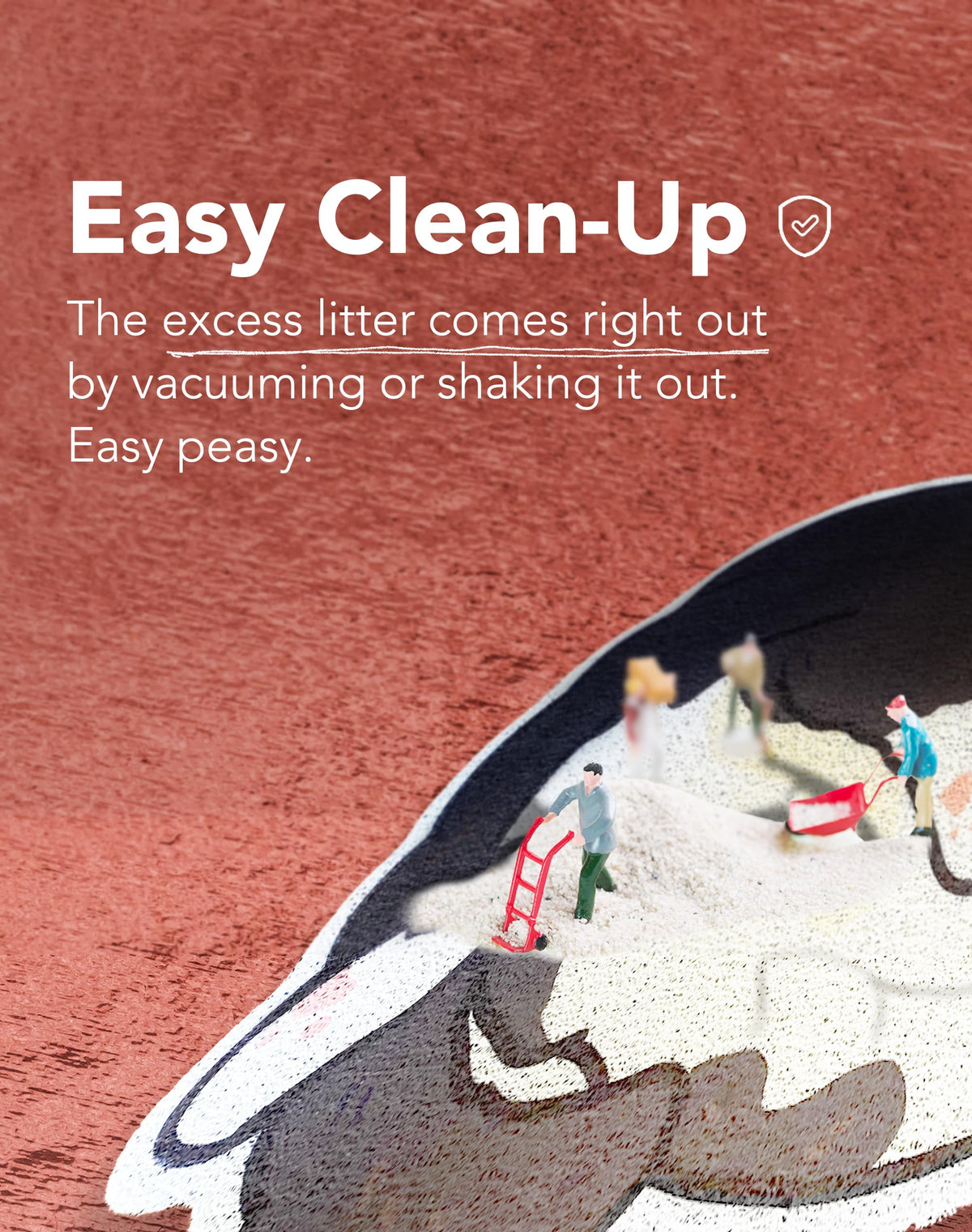 Q: How do I clean the Lukamoo litter mat?A: You can easily clean the Lukamoo litter mat by vacuuming or shaking it to remove excess litter, making maintenance quick and hassle-free.