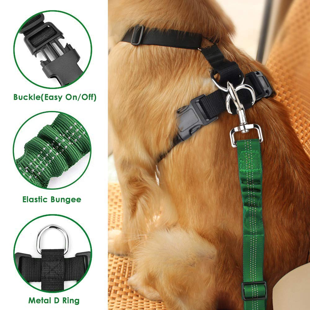 Lukovee Dog Safety Vest Harness Seatbelt, Dog Car Harness Seat Belt Adjustable Pet Harnesses Double Breathable Mesh Fabric Car Vehicle Connector Strap Dog (Large, Green)