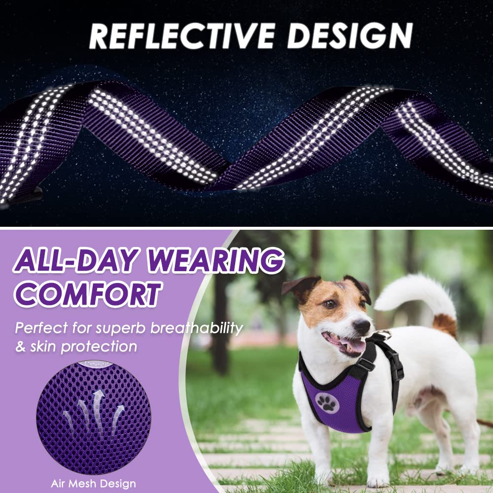 Lukovee Dog Safety Vest Harness With Seatbelt, Dog Car Harness Seat Belt Adjustable Pet Harnesses Double Breathable Mesh Fabric With Car Vehicle Connector Strap For Dog (Small, Purple)